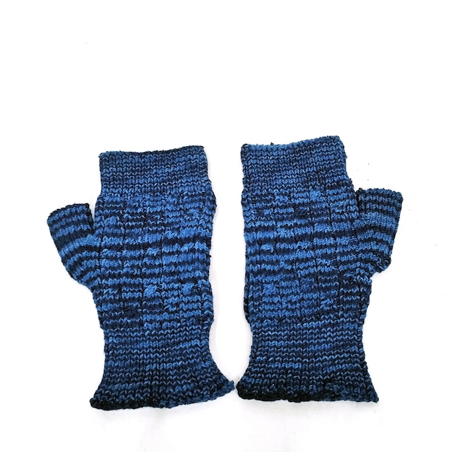 藍染ニット・手袋・ミトン・指ぬき・親指あり・ショート丈・二色段染・ホールガーメント