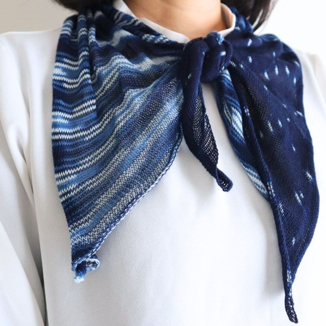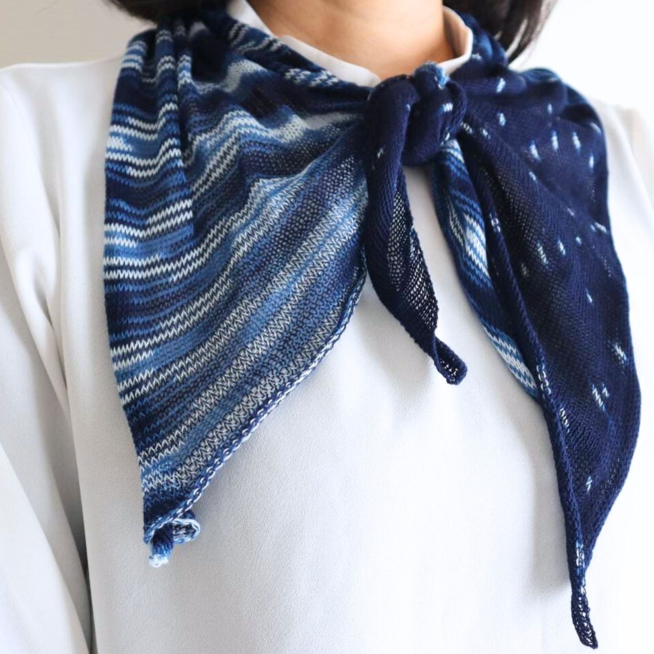 藍染ニットストール/三色段染・二色段染・雪ん子柄