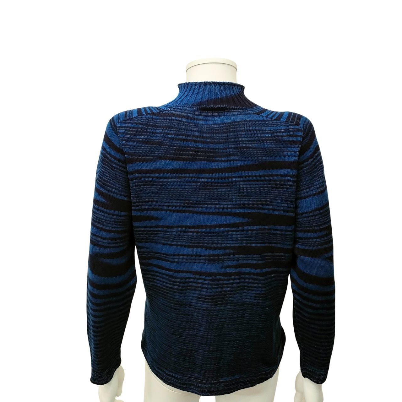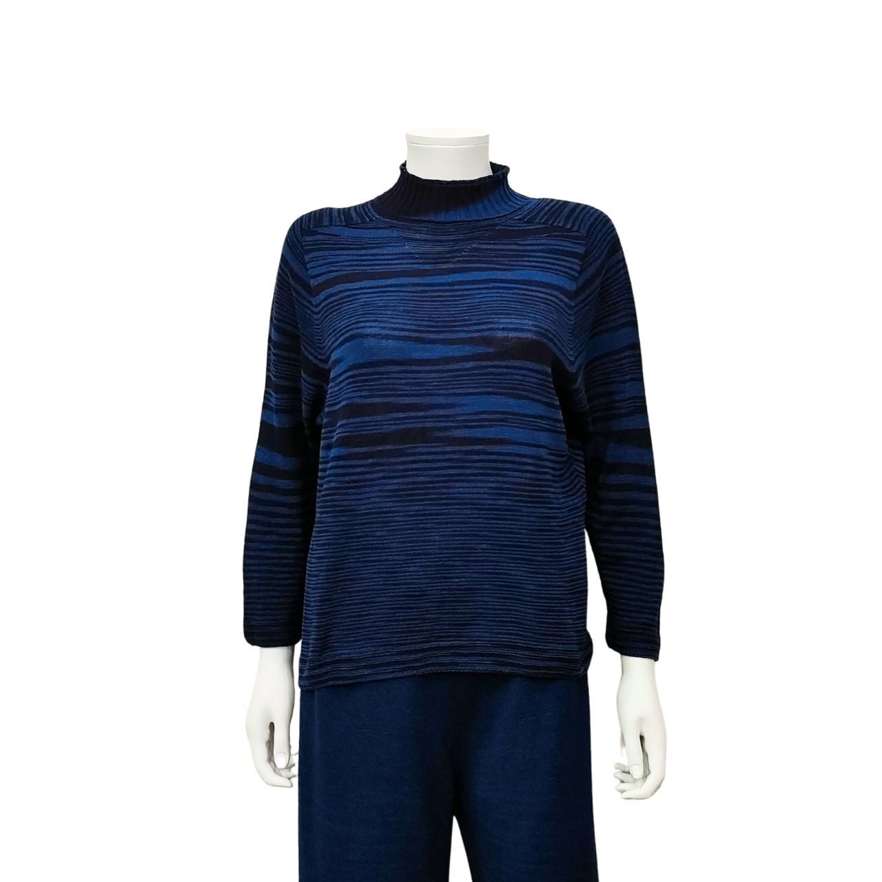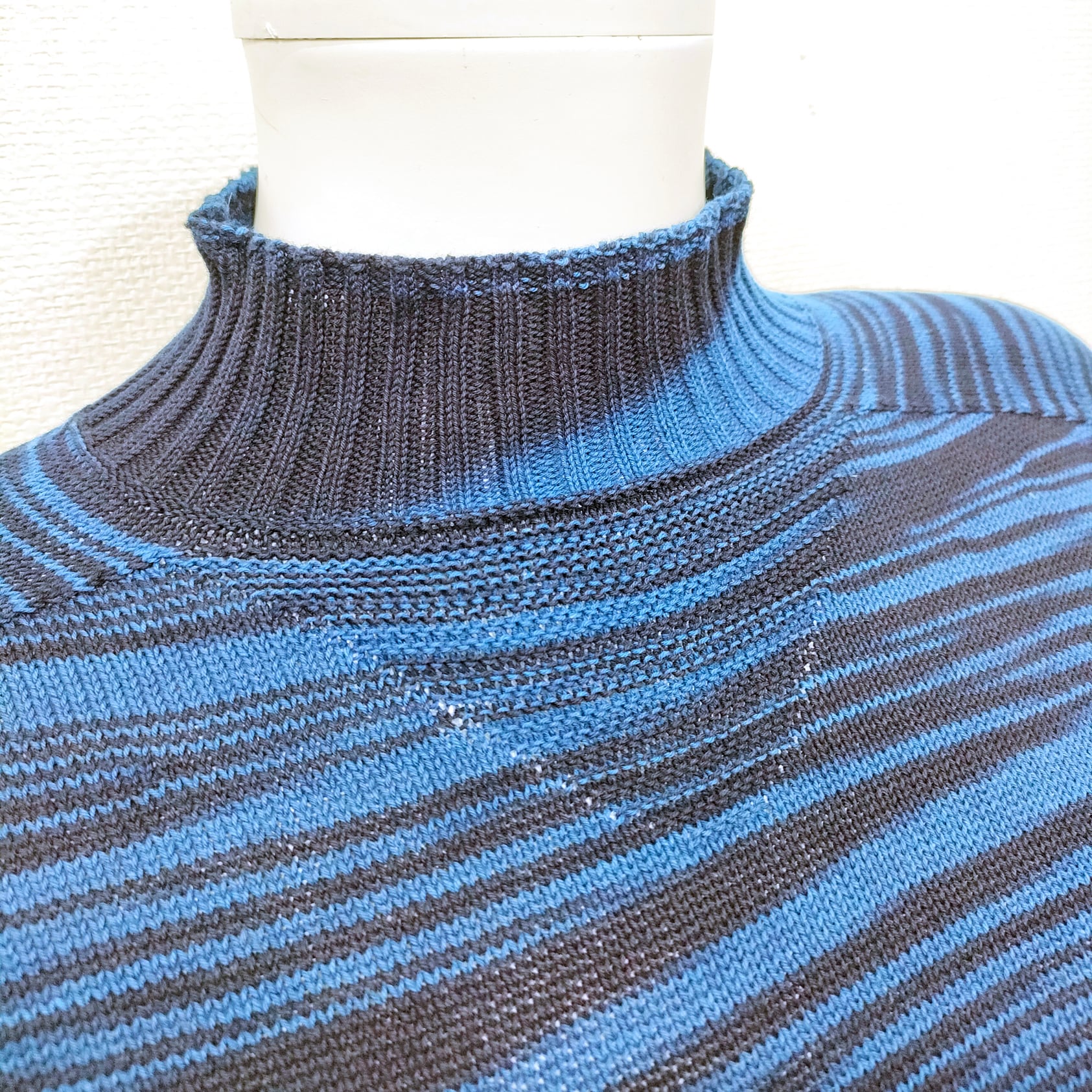 ハイネックドルマン風セーター・長袖・二色段染/藍染ニット/ホールガーメント