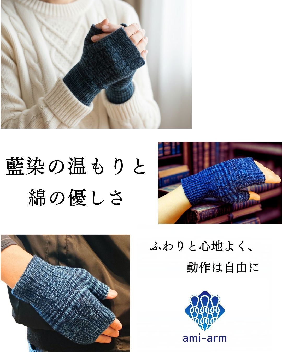 そんなわがままを叶えるのが、アミアームの「藍染ニット手袋」です。