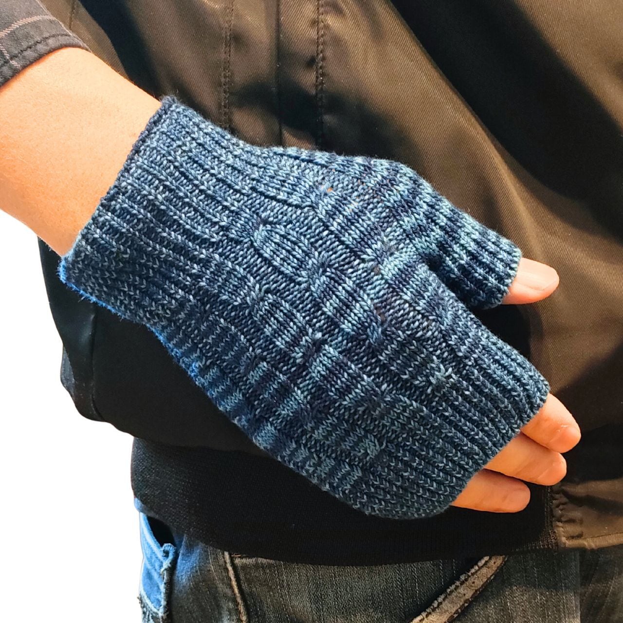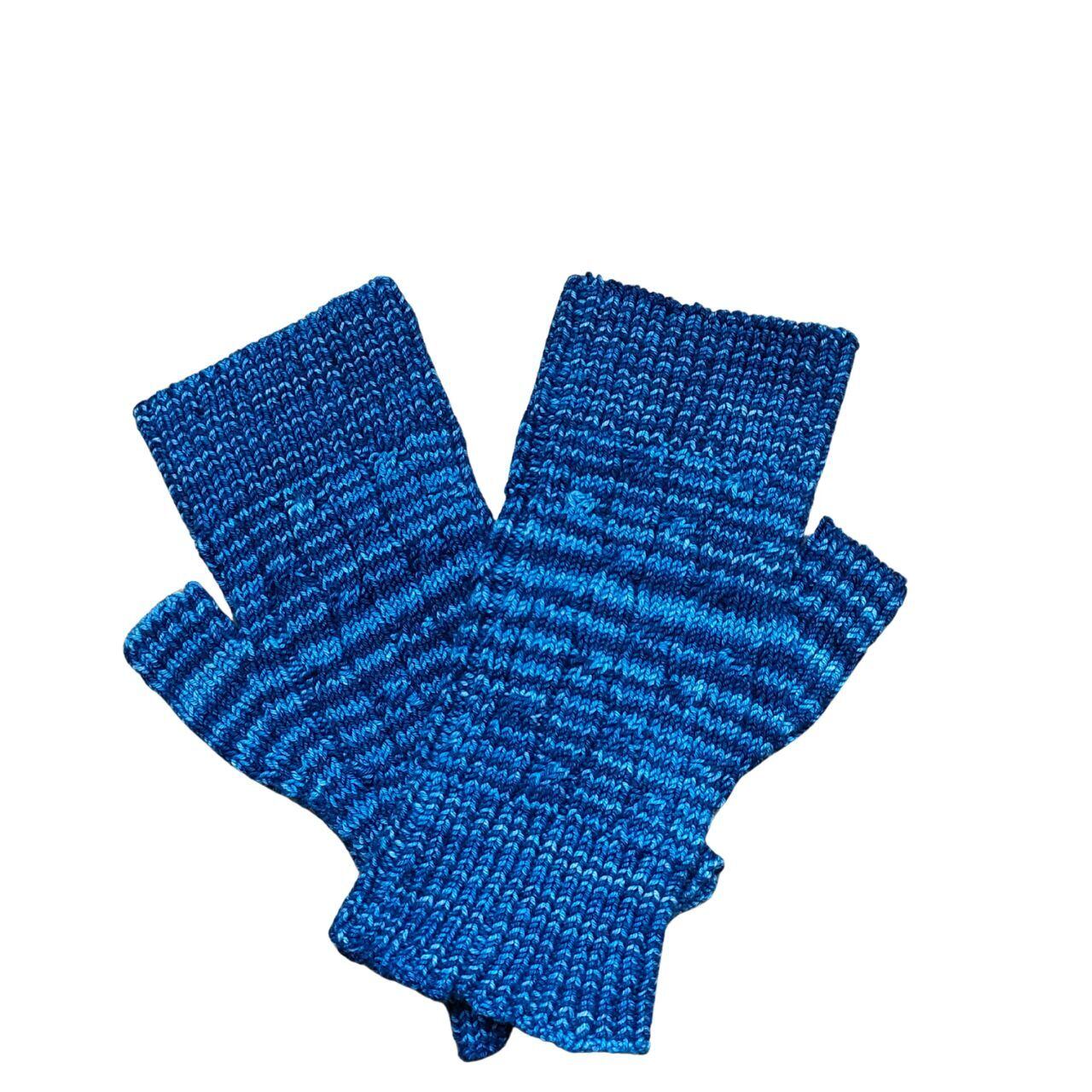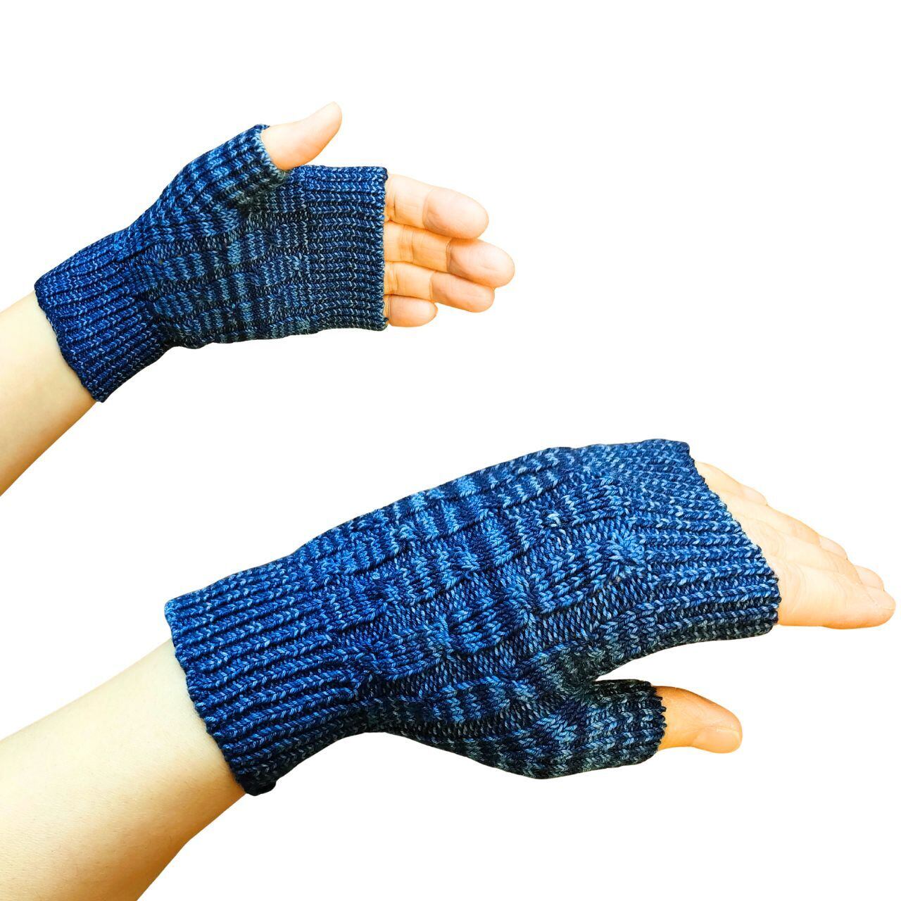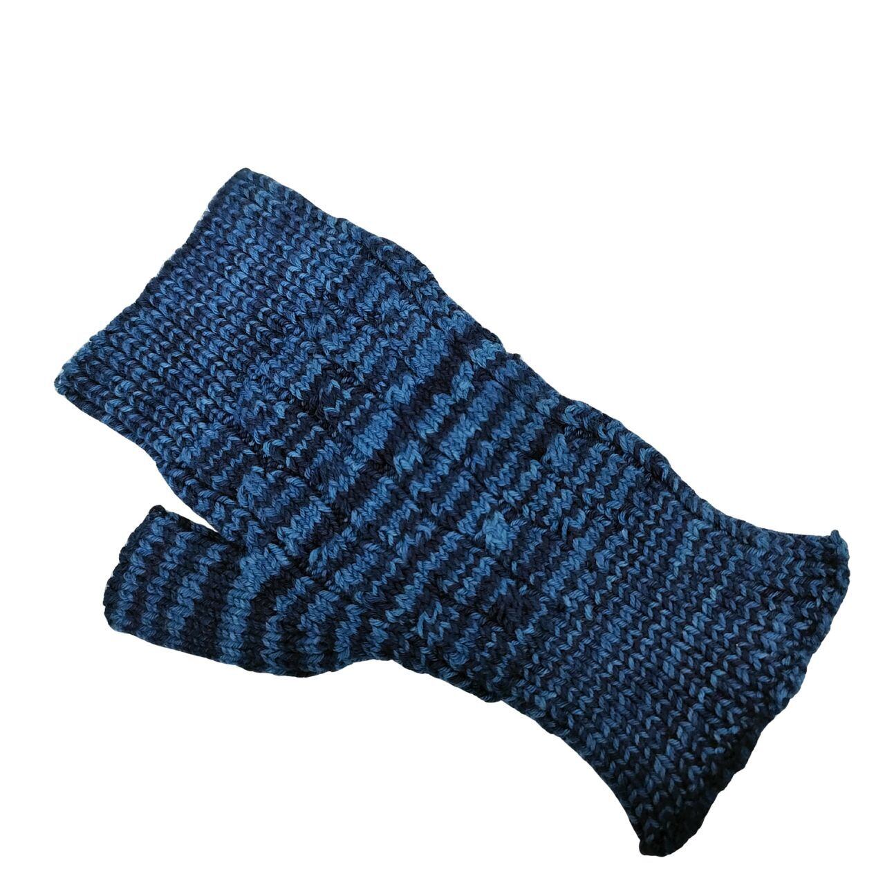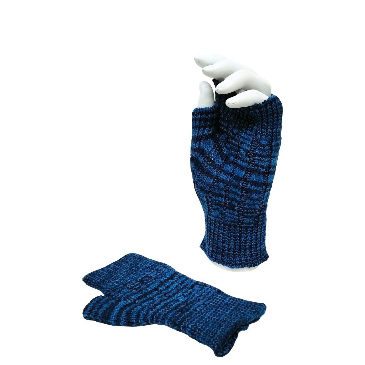 藍染ニット・手袋・ミトン・指ぬき・親指あり・ショート丈・二色段染・ホールガーメント