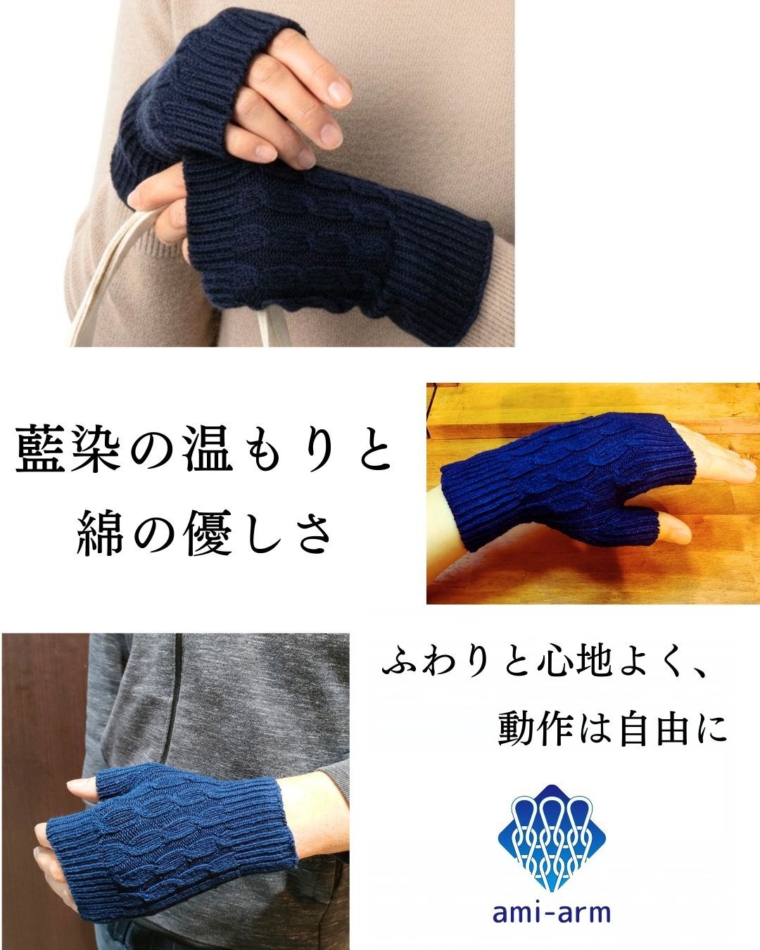 そんなわがままを叶えるのが、アミアームの「藍染ニット手袋」です。