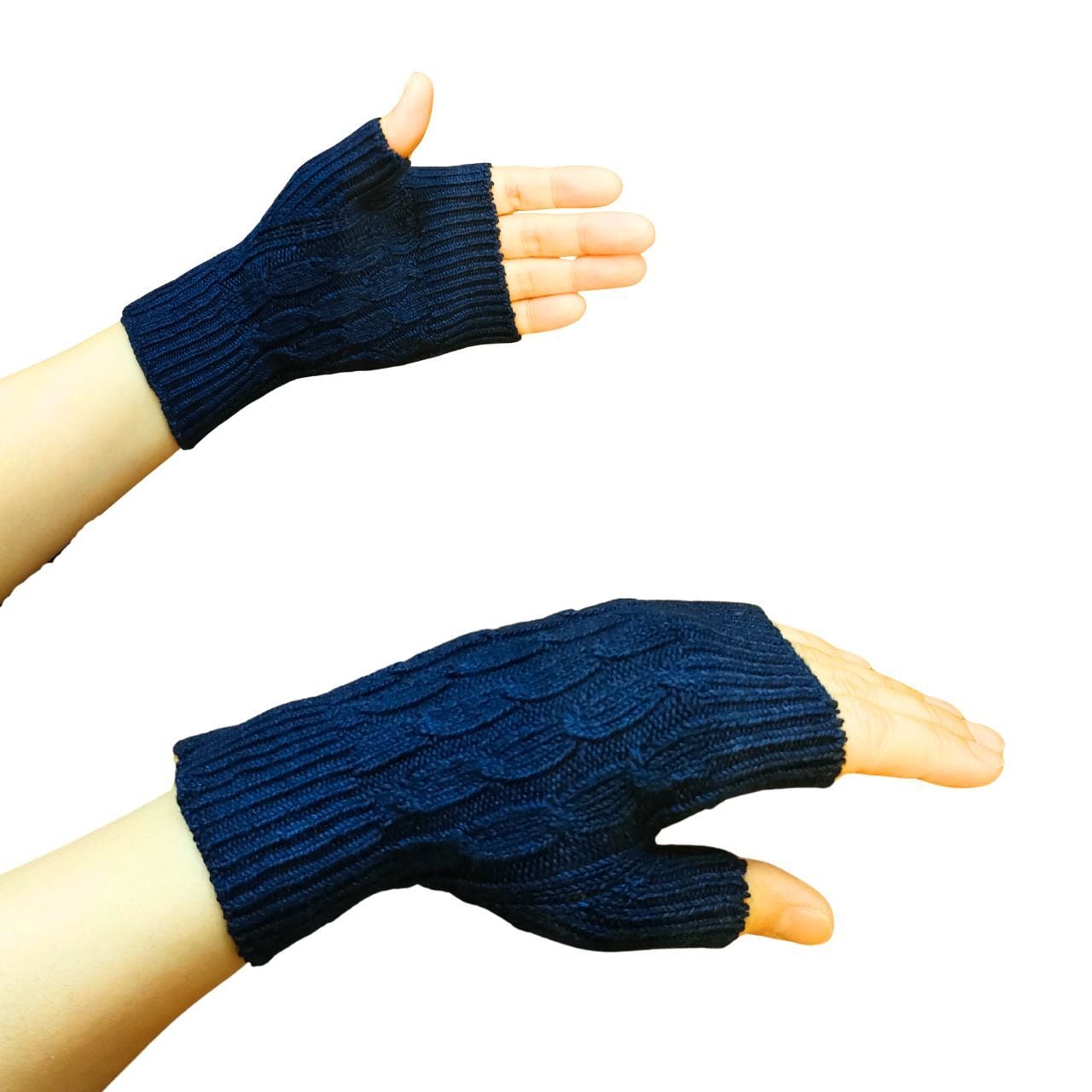 藍染ニット・手袋・ミトン・指ぬき・親指あり・ショート丈・紺無地