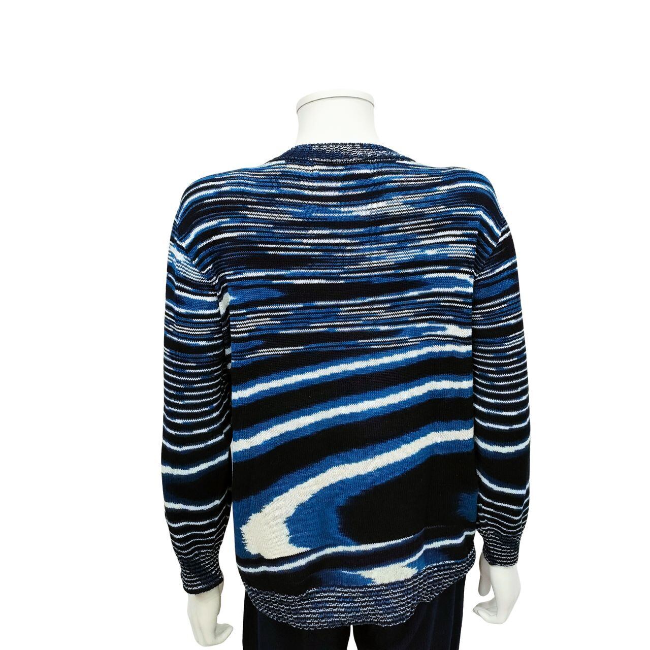 ヘンリーネックセーター・長袖・三色段染/藍染ニット/ホールガーメント