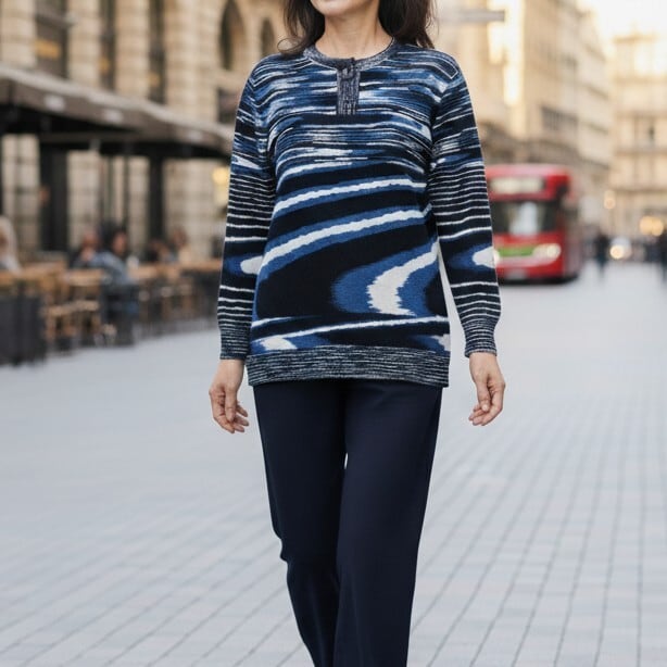 シンプルながらも洗練された印象を与えるこのセーターは、カジュアルな日常使いから、