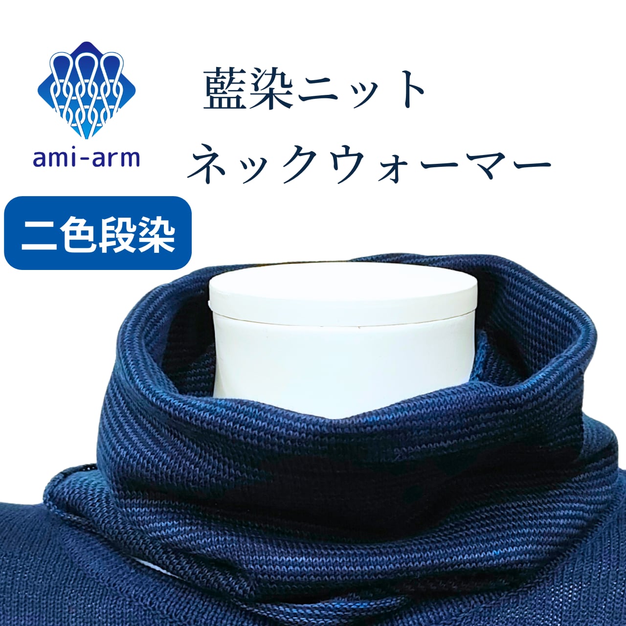 藍染ネックウォーマー/二色段染・ホールガーメント