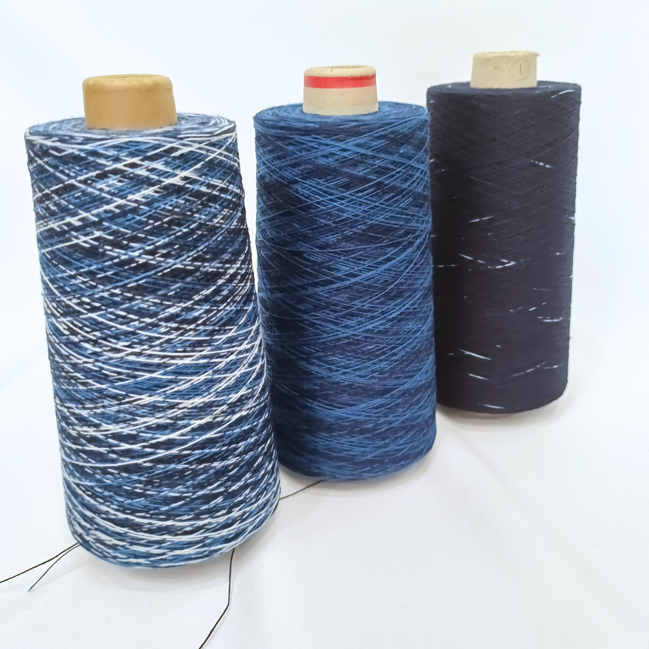 (先染めの手染め糸を編みますので、若干の柄の出方が変わってきます。)