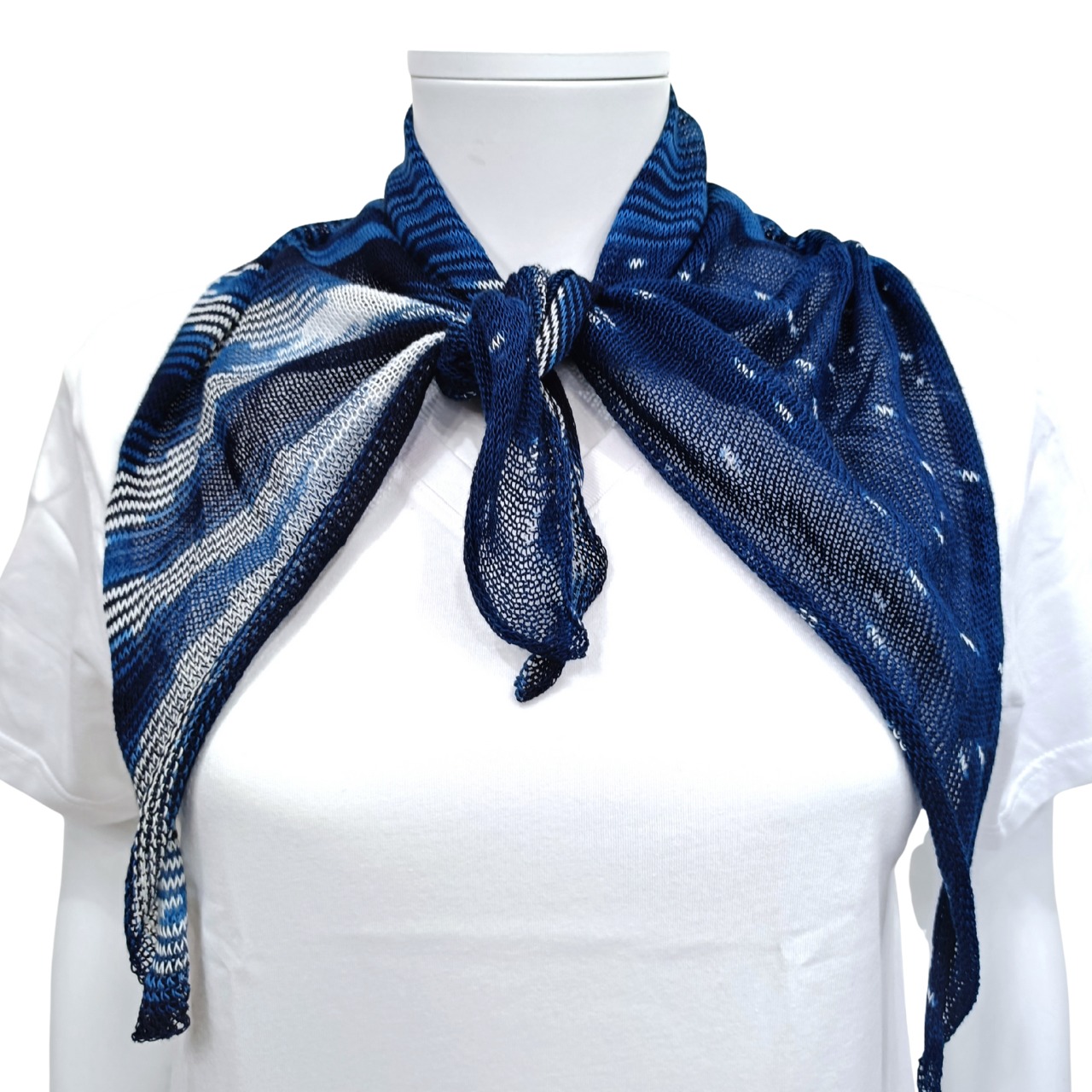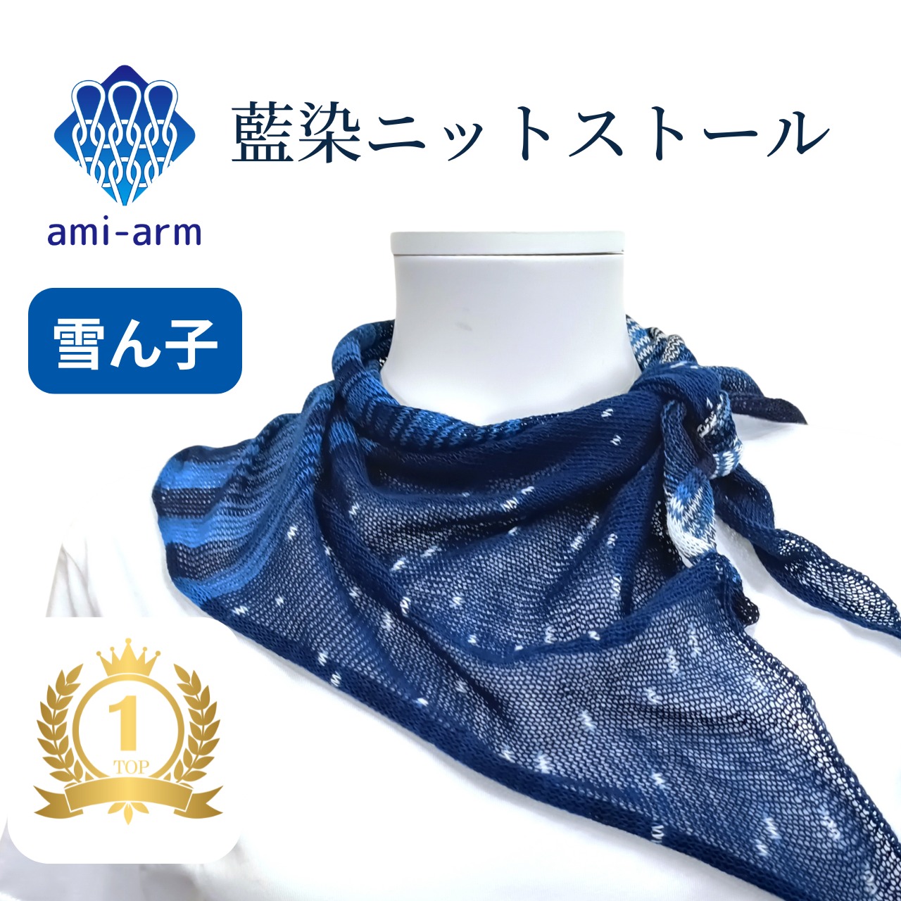 藍染ニットストール(小)/三色段染・二色段染・雪ん子柄