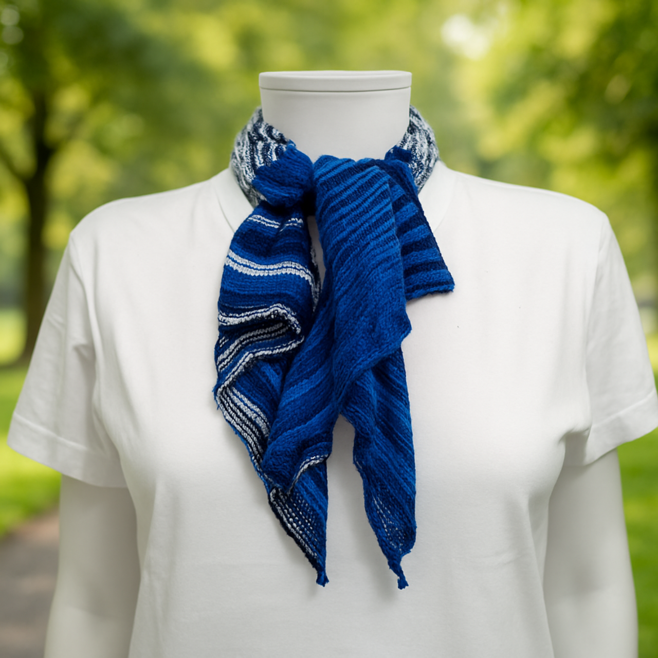 藍染ニットストール(小)三色段染・くくり・二色段染柄