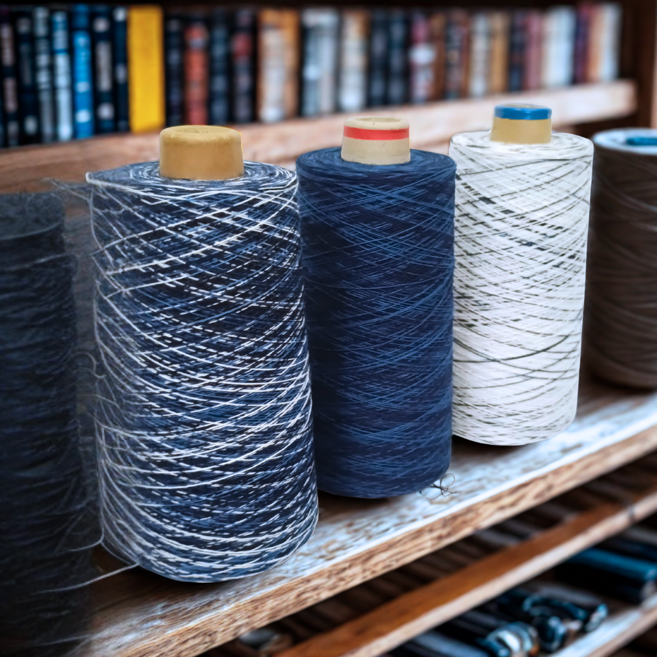 (先染めの手染め糸を編みますので、若干の柄の出方が変わってきます。)