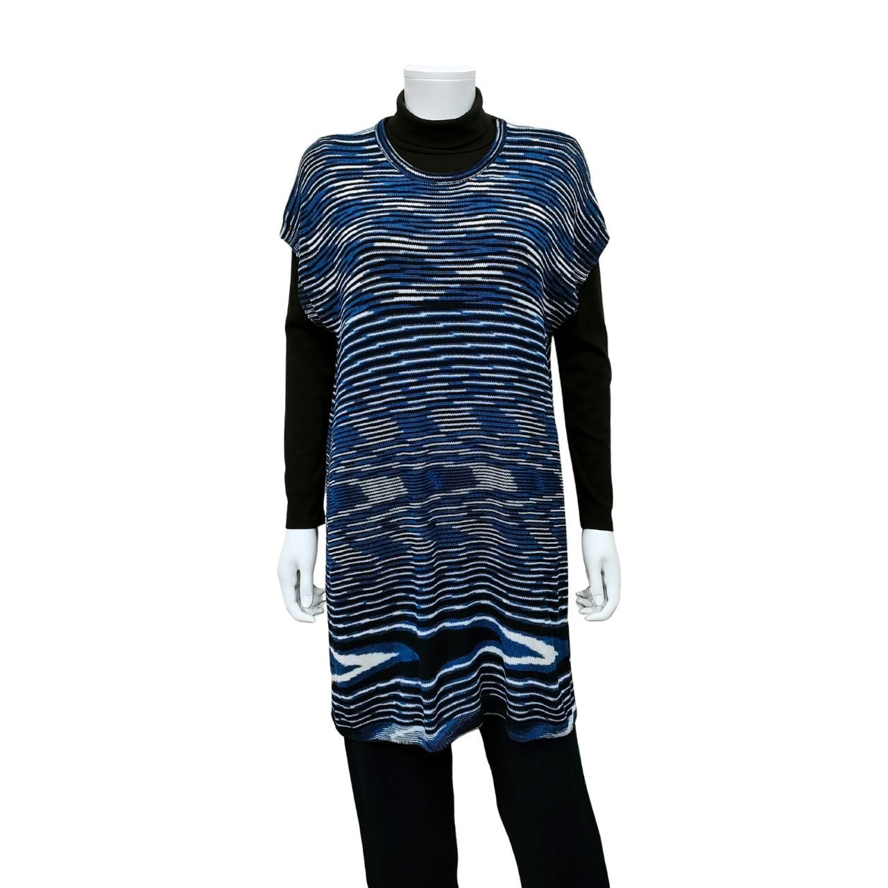 フレンチロングチュニック・三色段染/藍染ニット/ホールガーメント