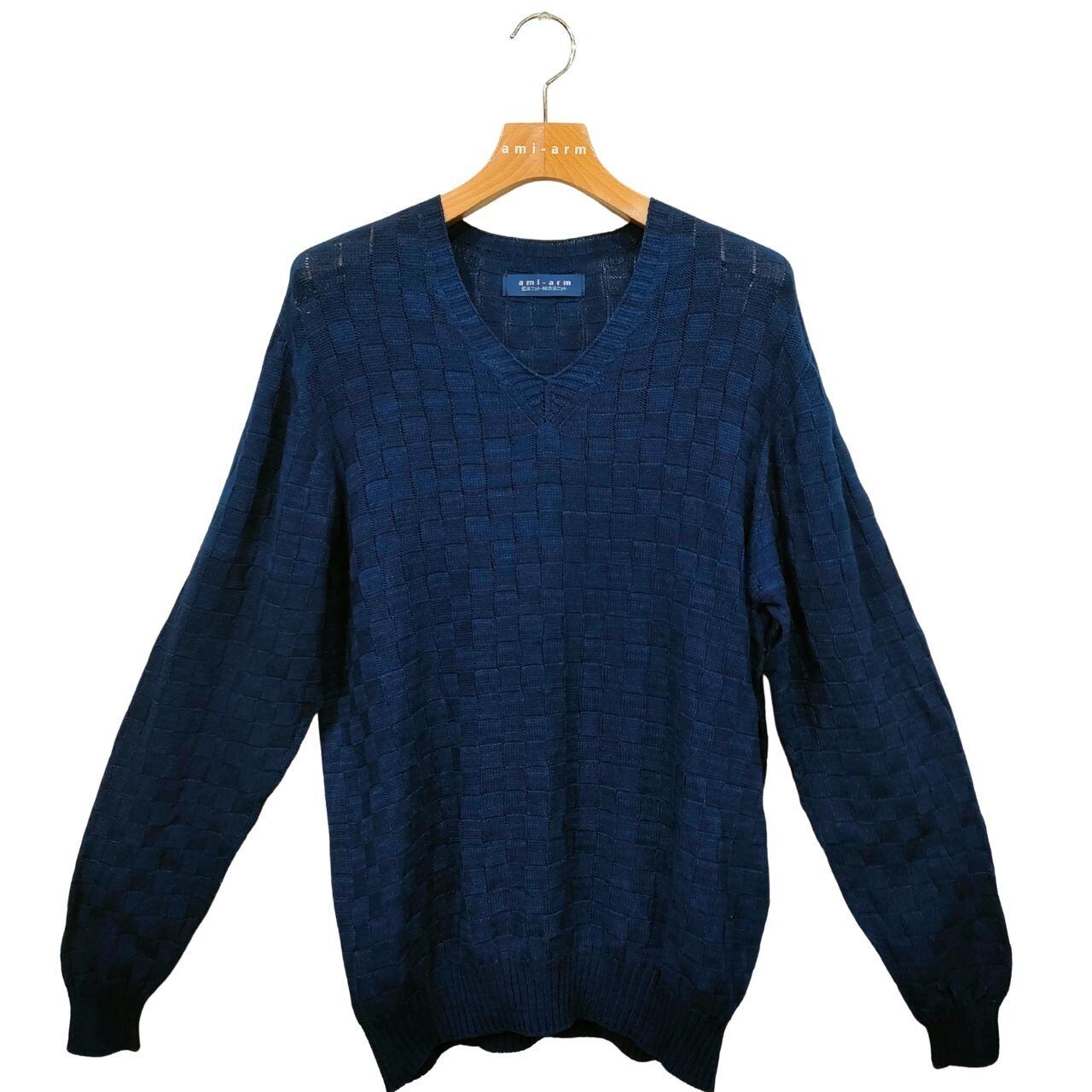 メンズセーター・紺無地・長袖・市松柄/藍染ニット/ホールガーメント