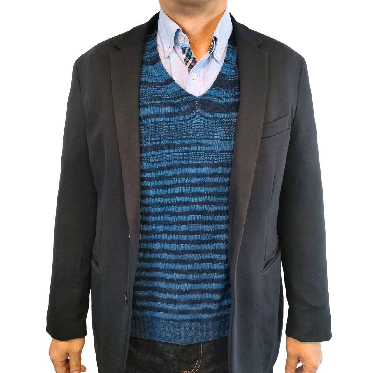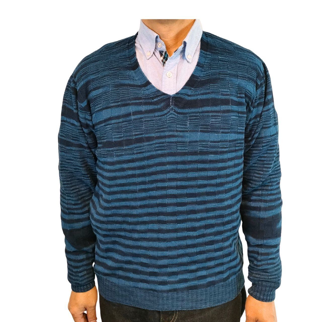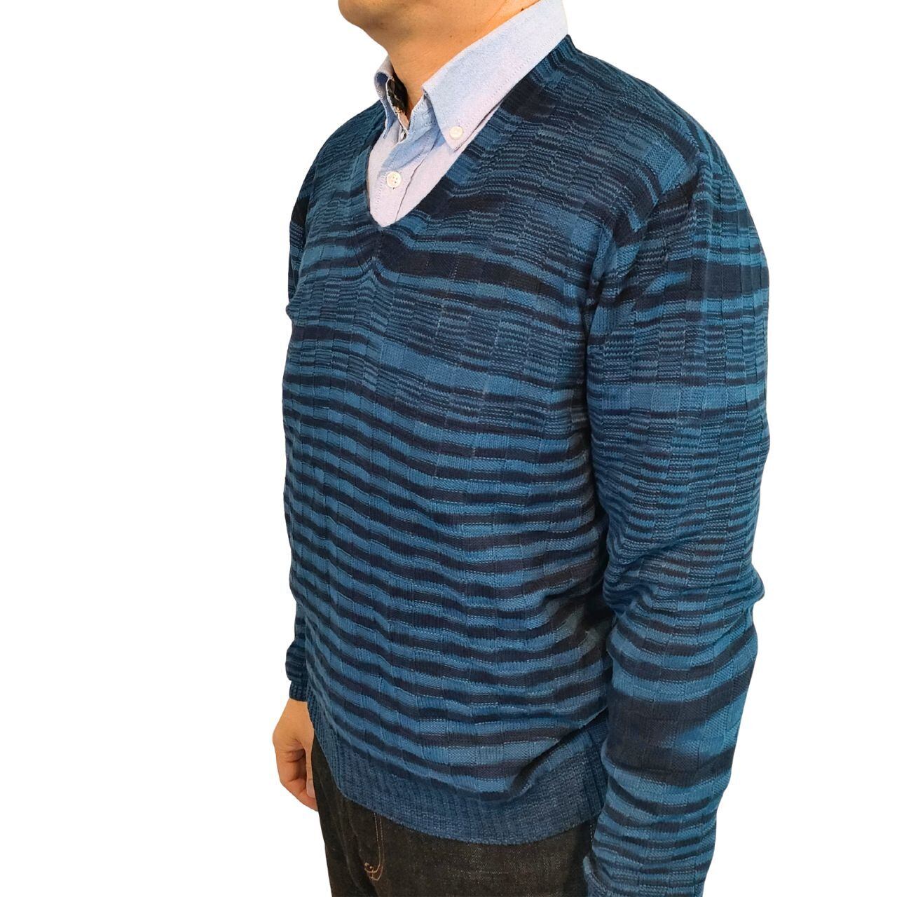 メンズセーター・二色段染・長袖・市松柄/藍染ニット/ホールガーメント