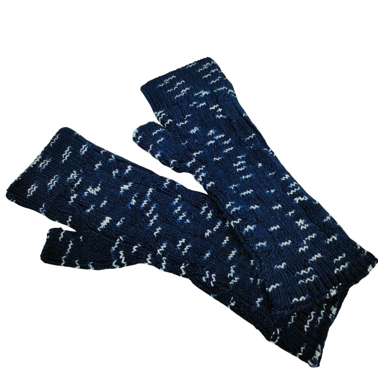 手袋・ミトン・指ぬき・親指あり・ミドル丈・白ちょん・ホールガーメント