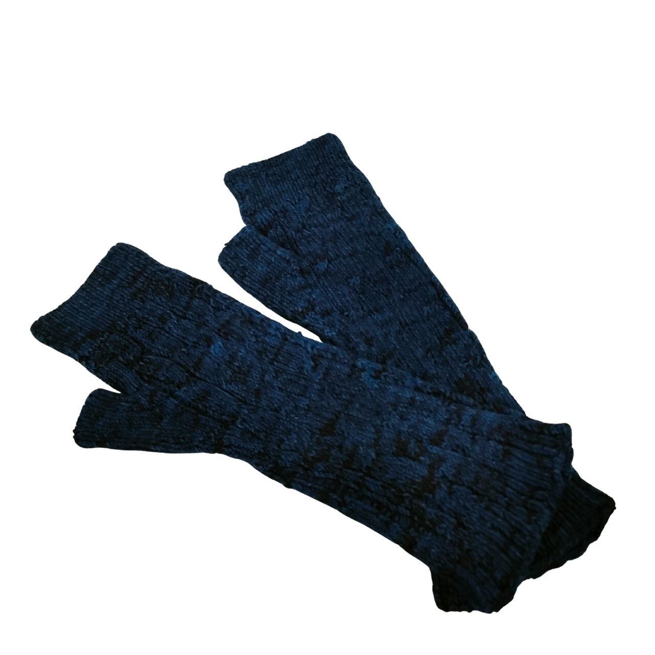 手袋・ミトン・指ぬき・親指あり・ミドル丈・藍くくり・ホールガーメント