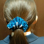 三色段染と二色段染の糸で編み上げたシュシュです。