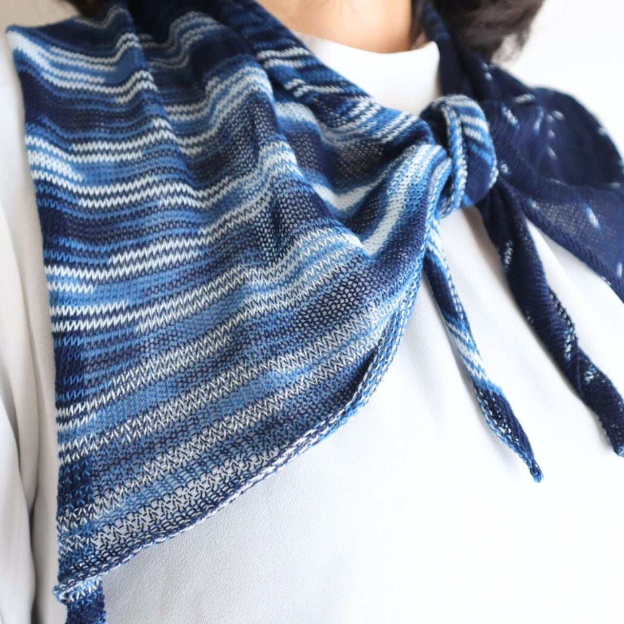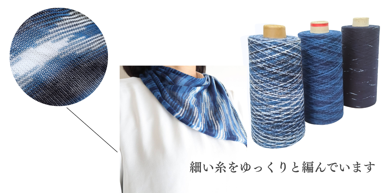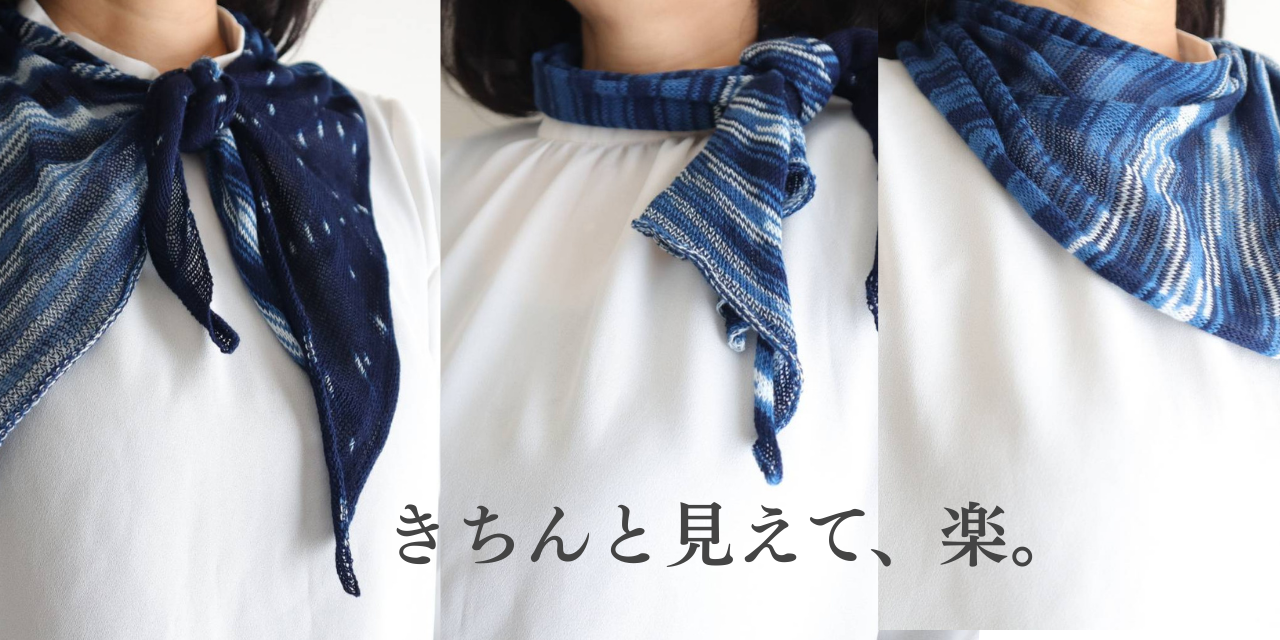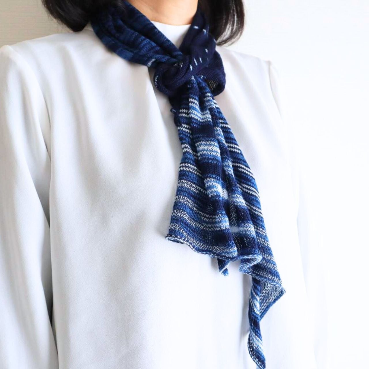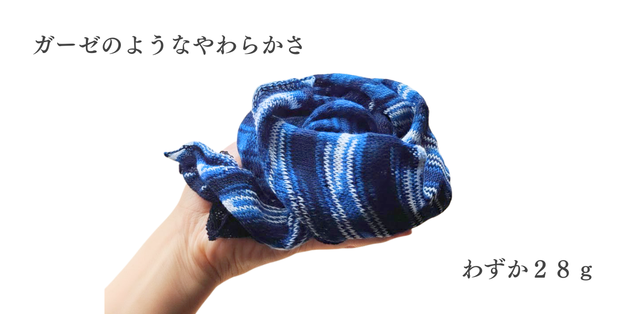 藍染ニットストール(三色段染・二色段染・雪ん子)|綿100%・軽い約28g|日本製