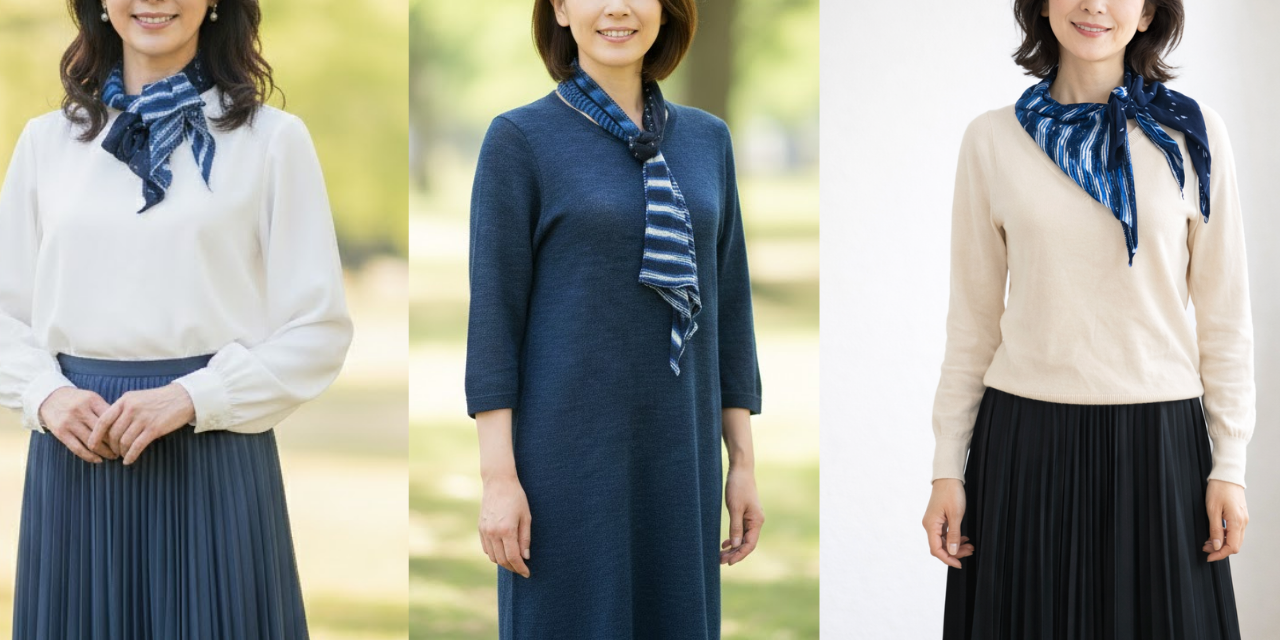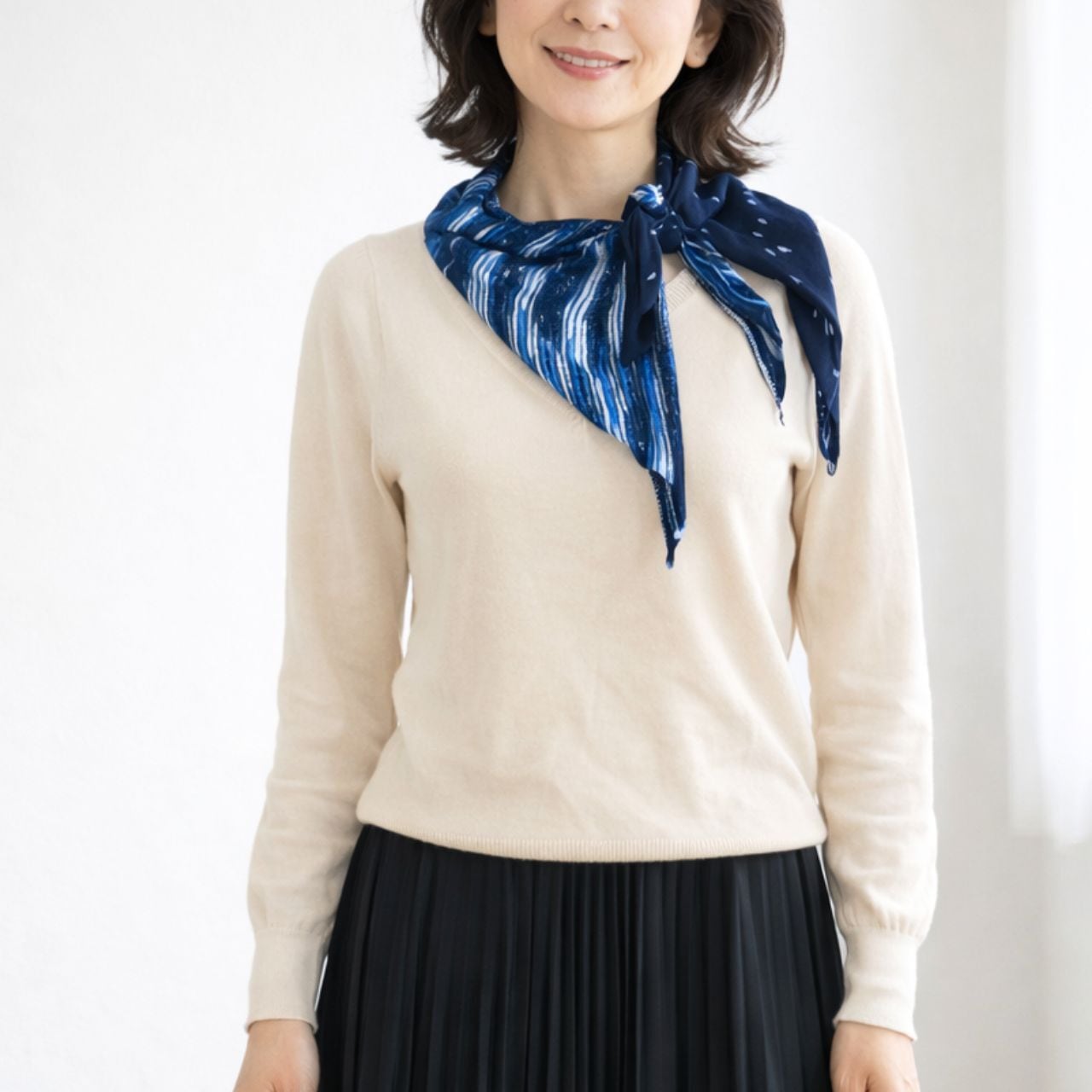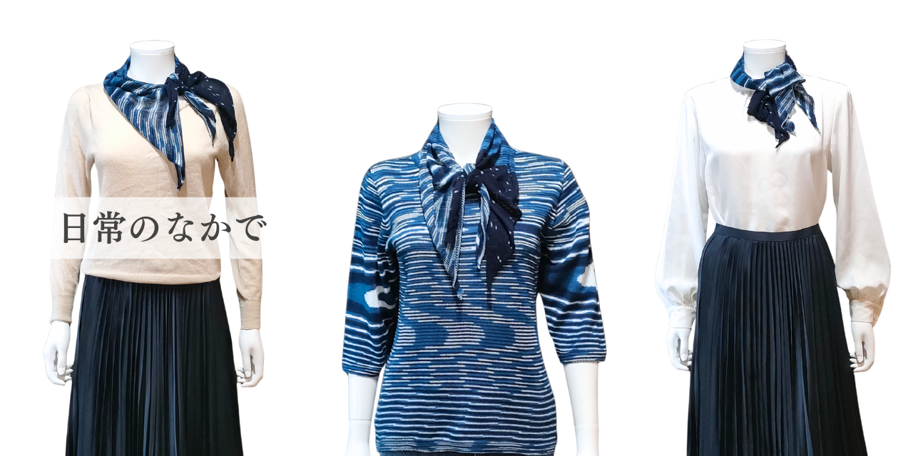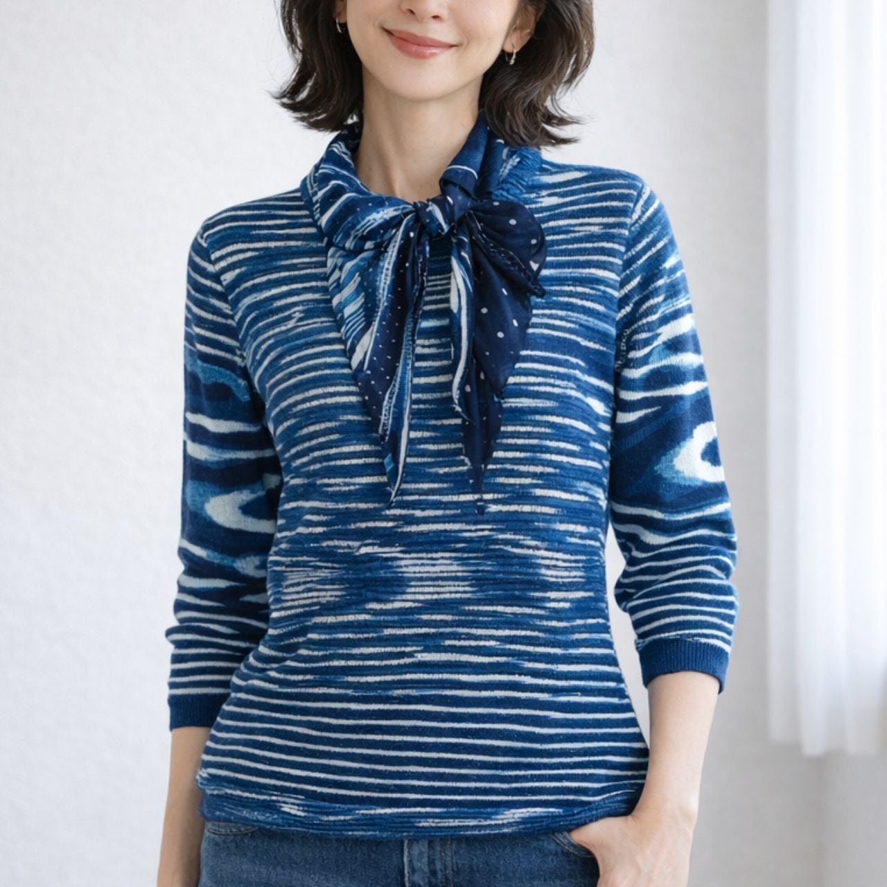 藍染ニットストール(三色段染・二色段染・雪ん子)|綿100%・軽い約28g|日本製