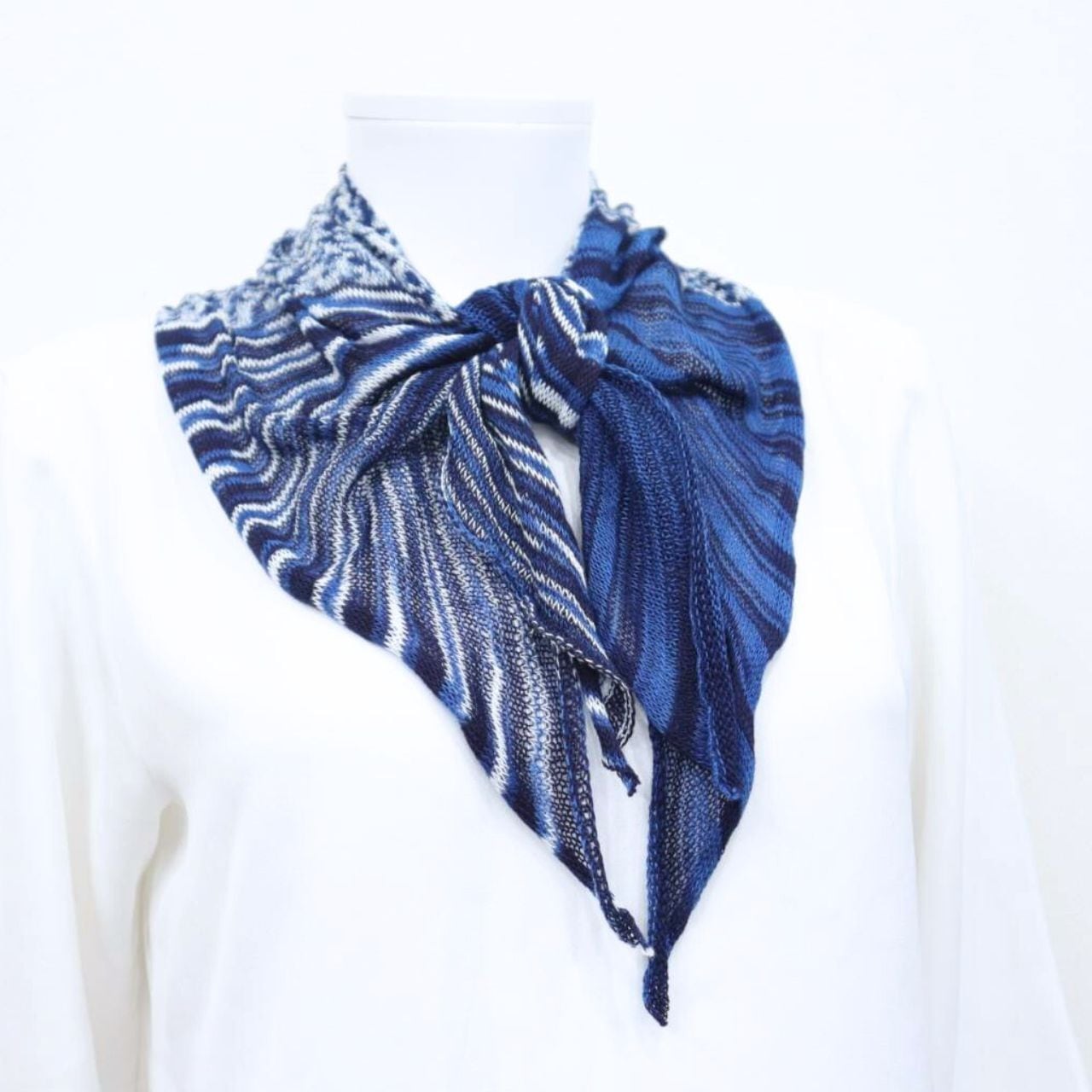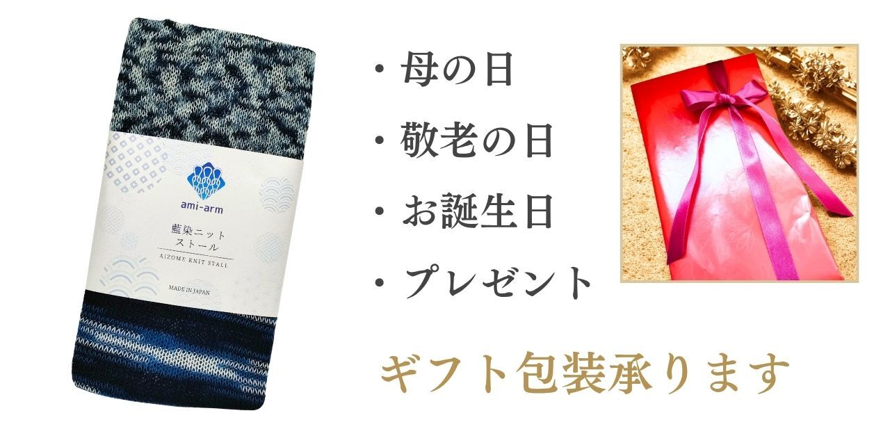 藍染ニットストール(三色段染・くくり・二色段染)|綿100%・軽い約28g|日本製