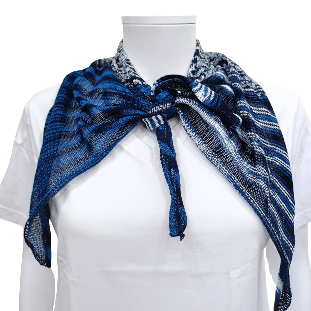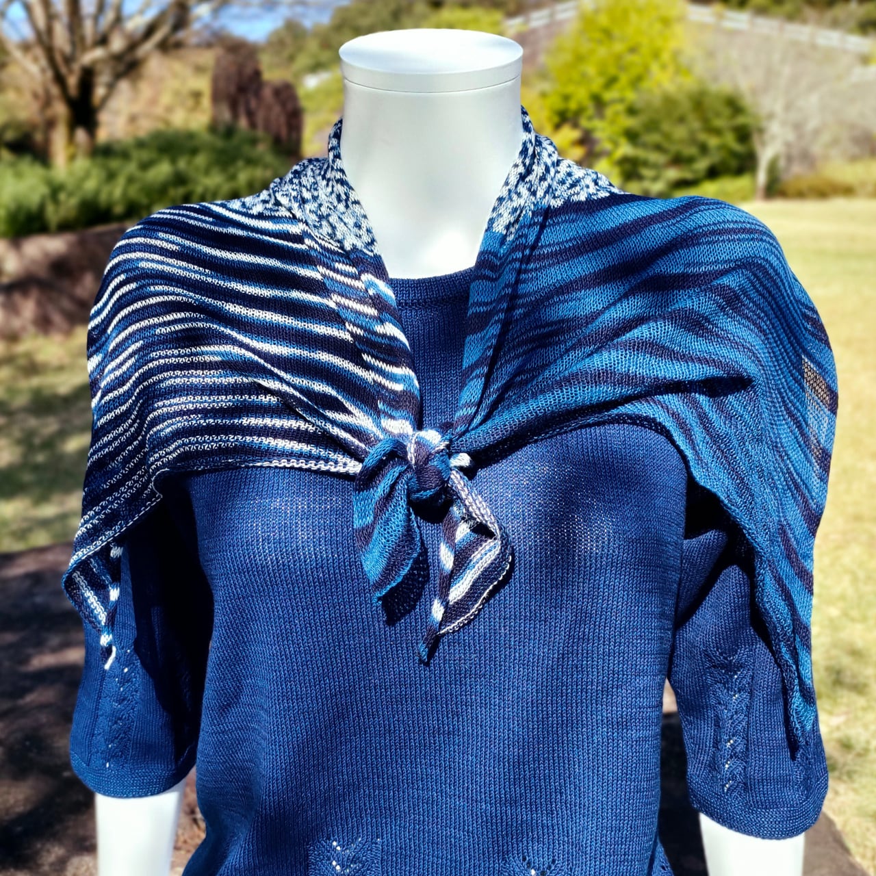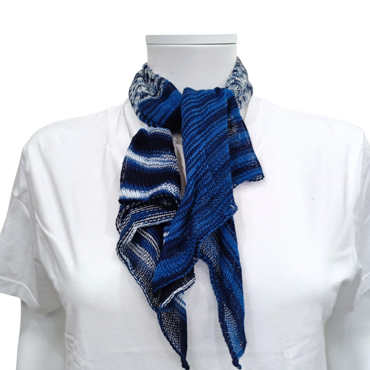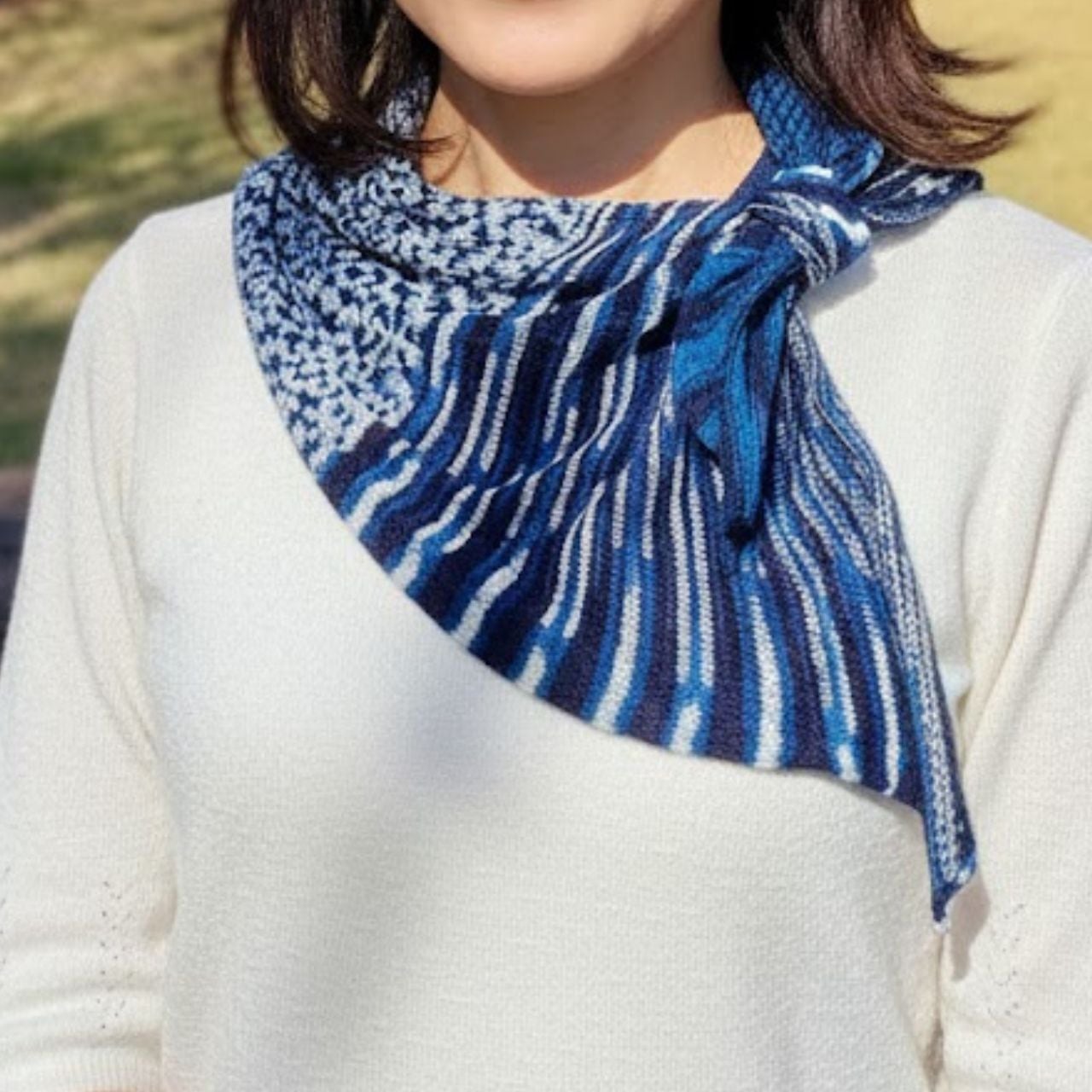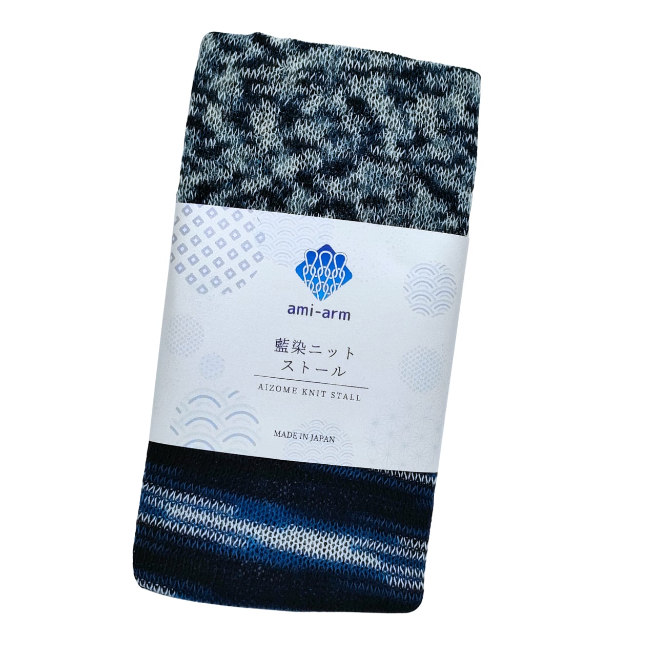 藍染ニットストール(小)/三色段染・くくり・二色段染柄