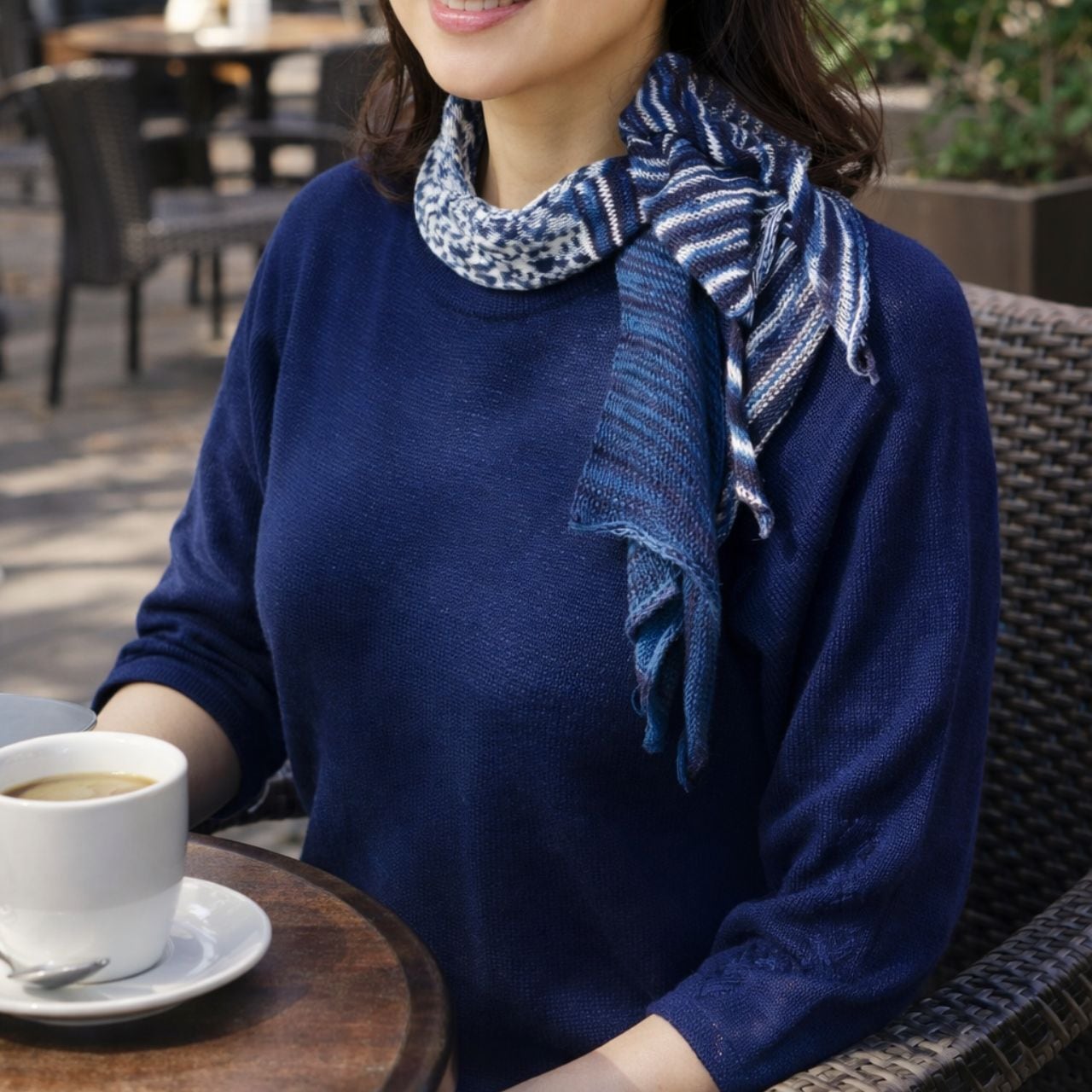 首元にひと巻きするだけで藍のグラデーションが映える洗練されたカジュアルさを演出します。