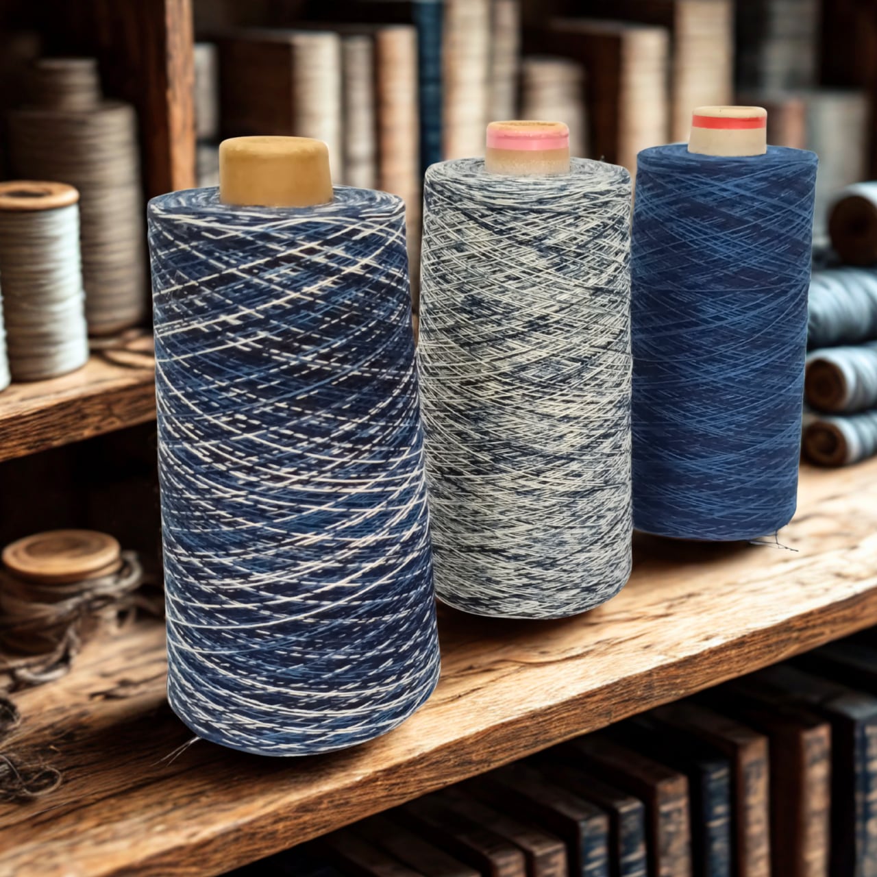(先染めの手染め糸を編みますので、若干の柄の出方が変わってきます。)