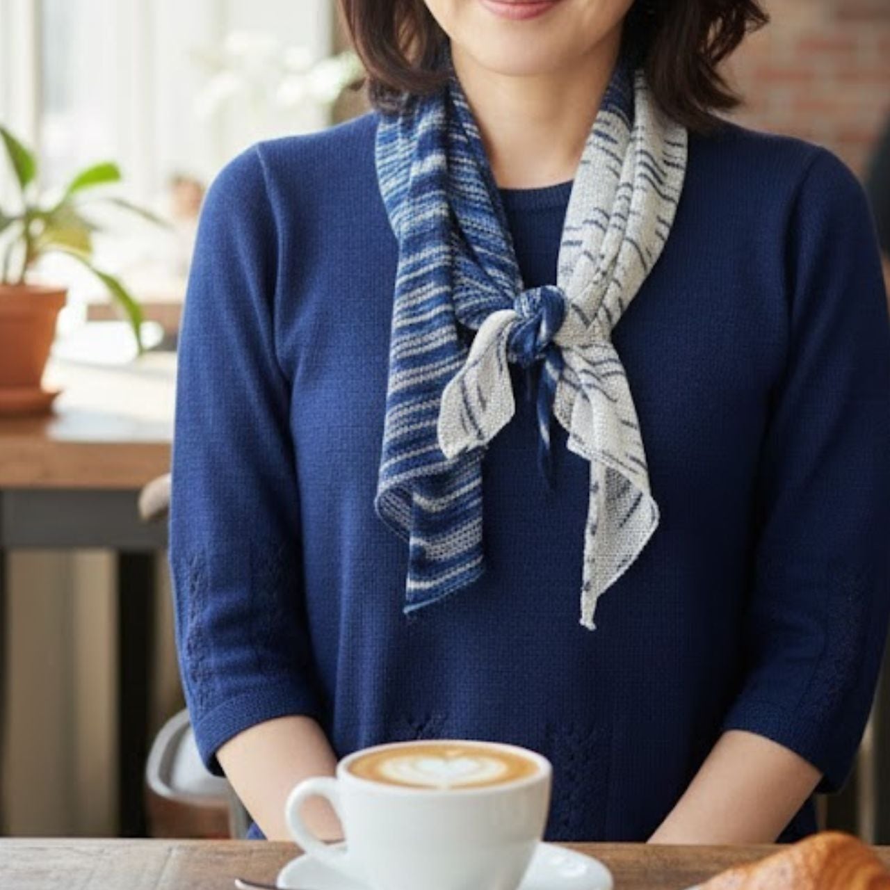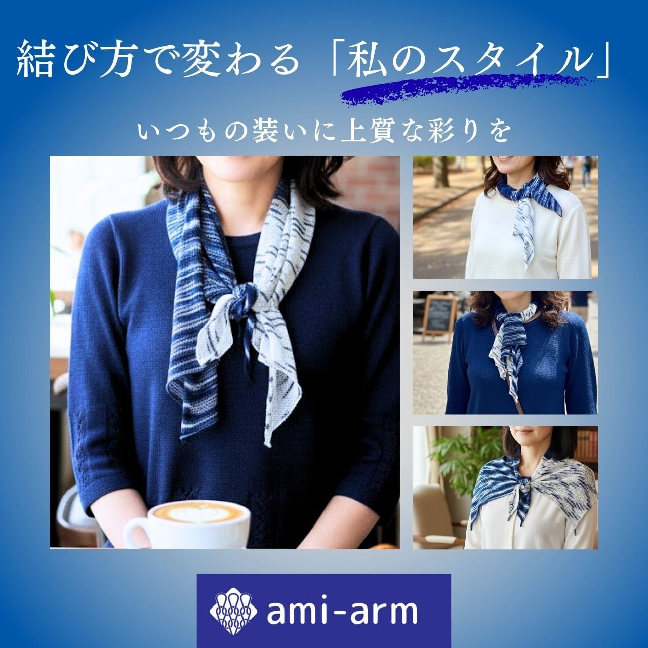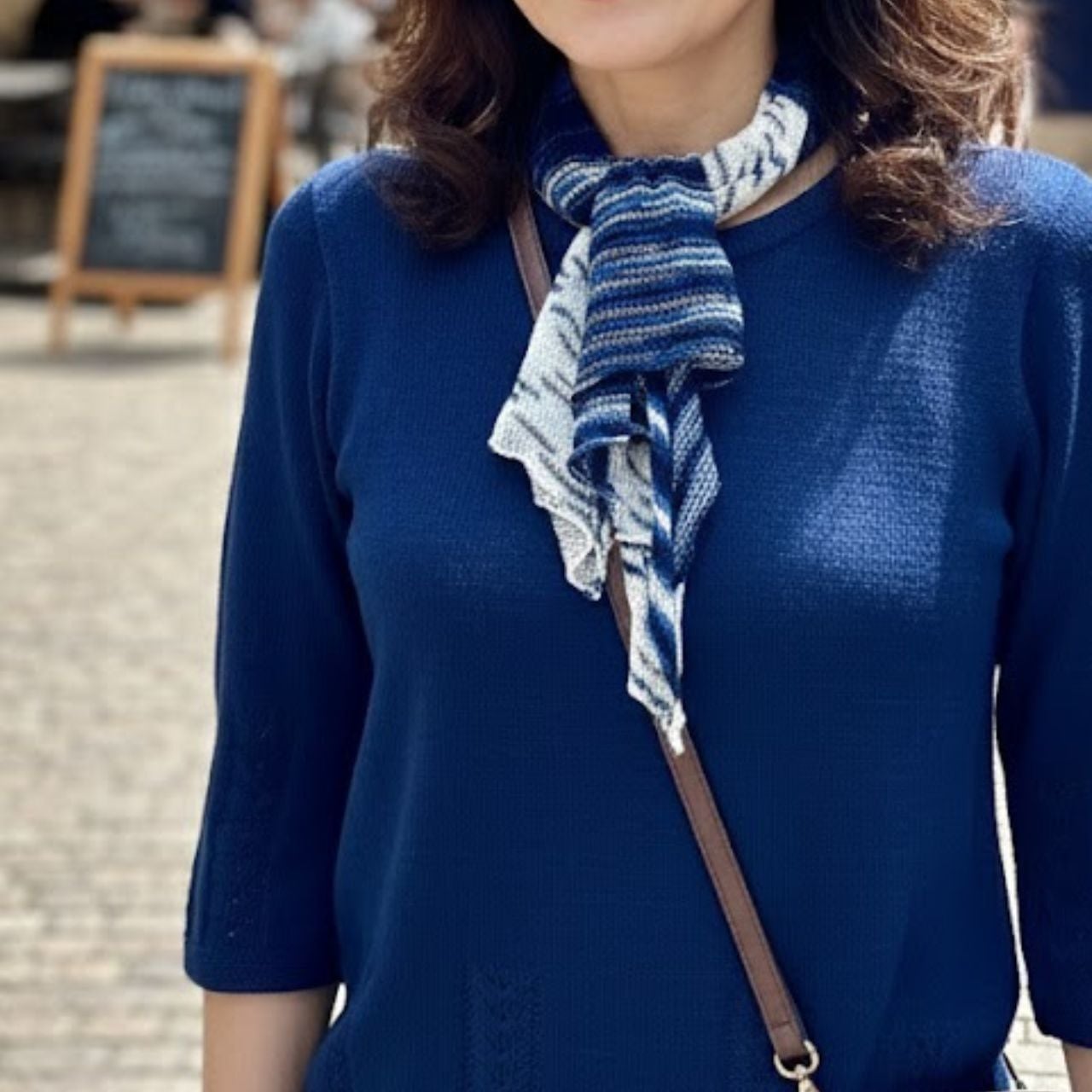 首元にひと巻きするだけで藍のグラデーションが映える洗練されたカジュアルさを演出します。