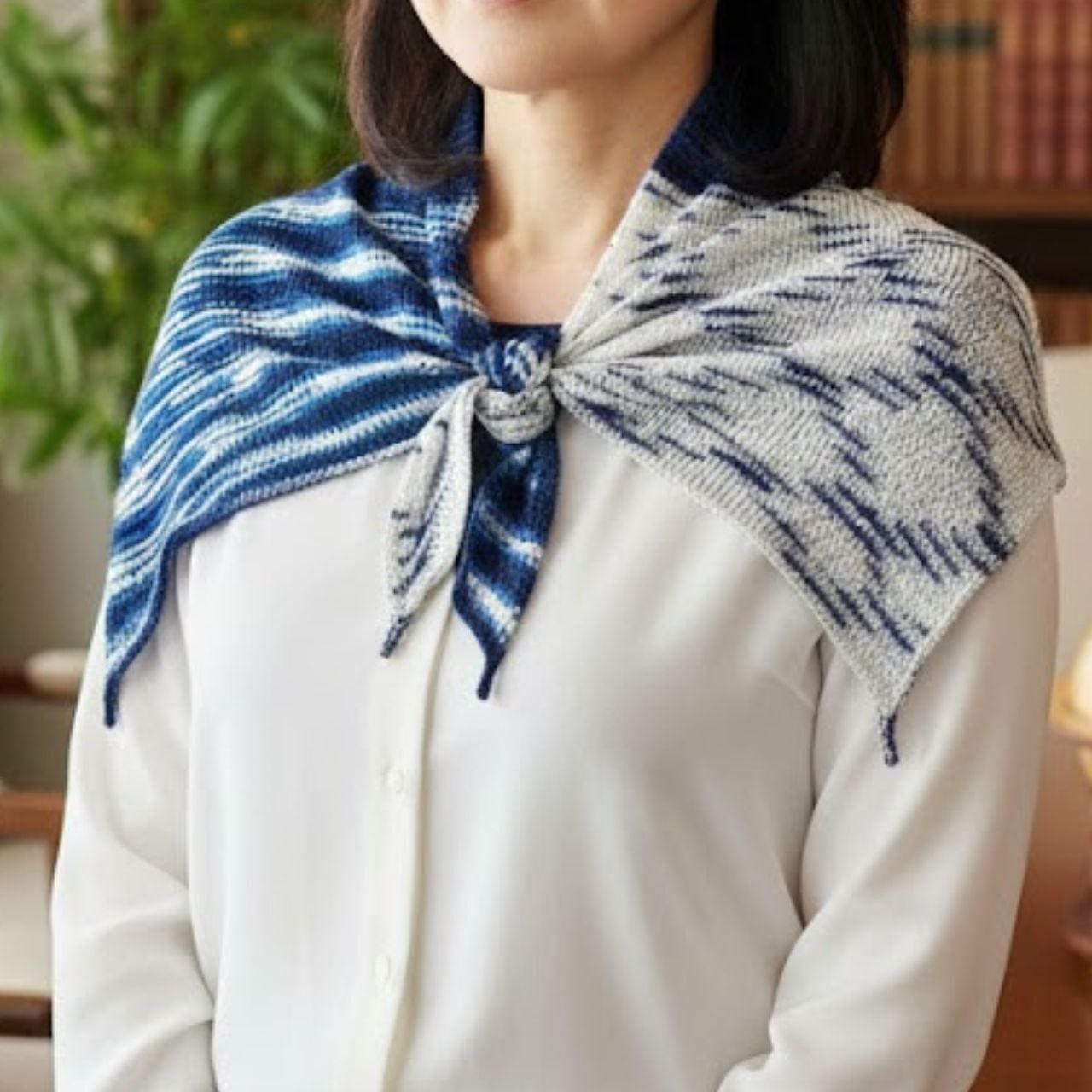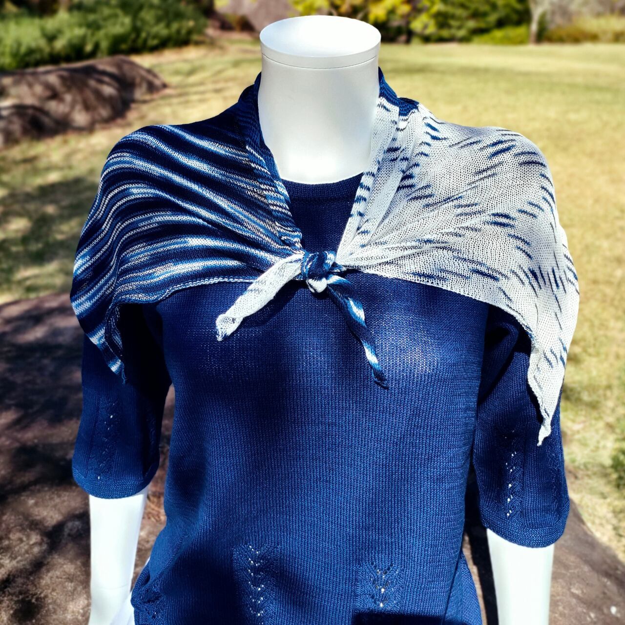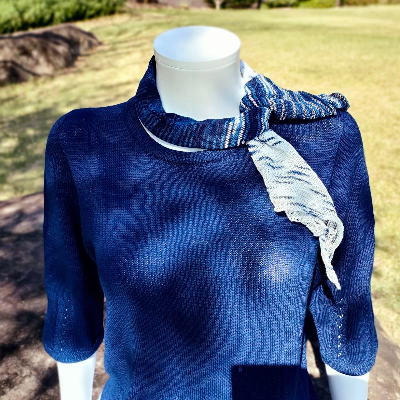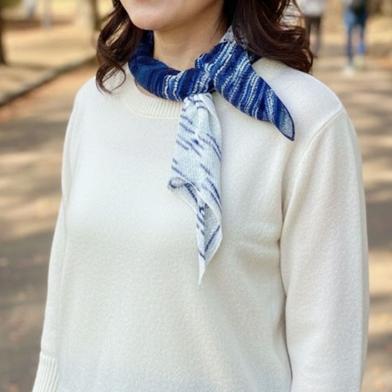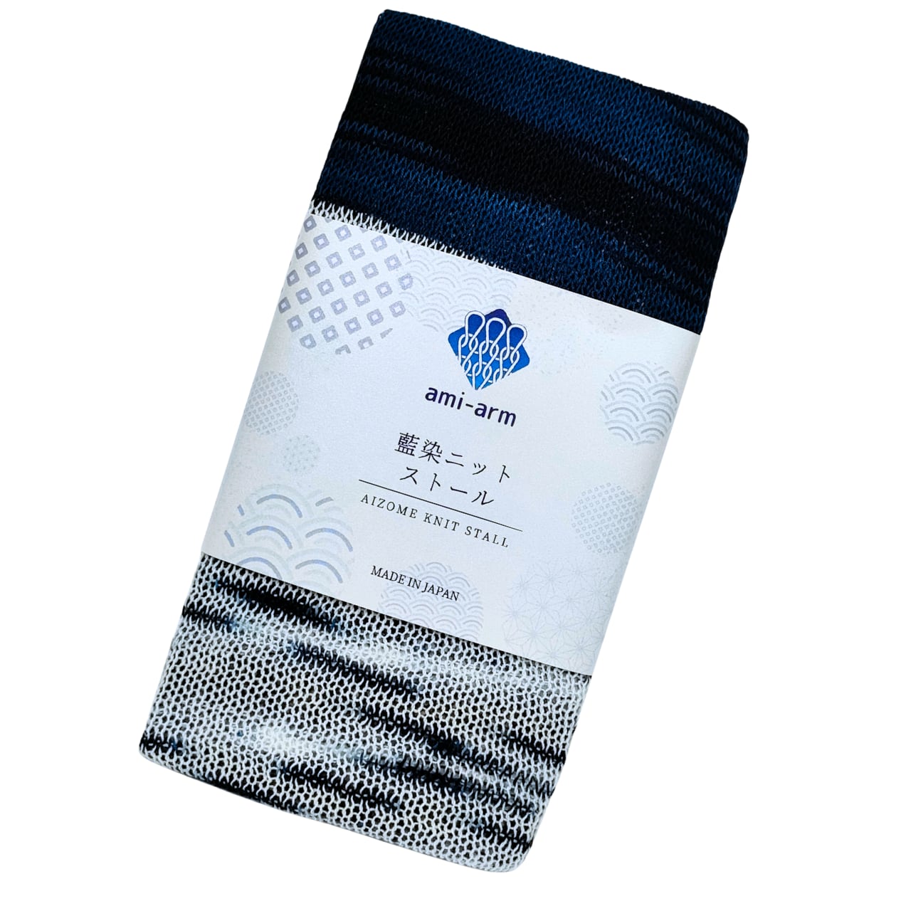 藍染ニットストール(小)/三色段染・二色段染・白紺柄