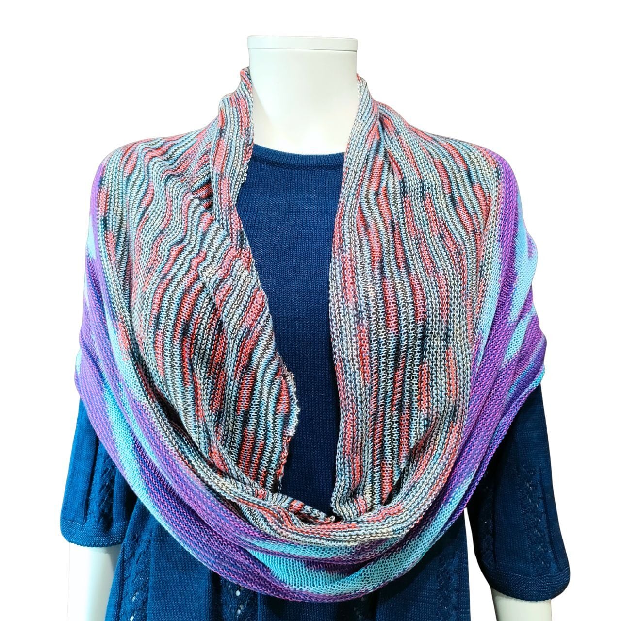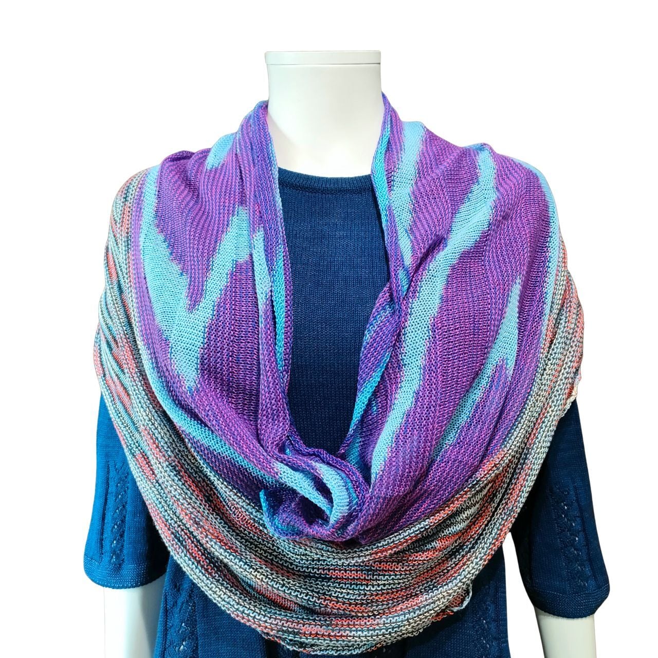 絶妙なマルチカラーのグラデーションは、サッと巻くだけで表情を明るく、若々しい印象に。熟練の編み地がもたらす柔らかな肌触りと軽やかさは、お出かけの強い味方です。