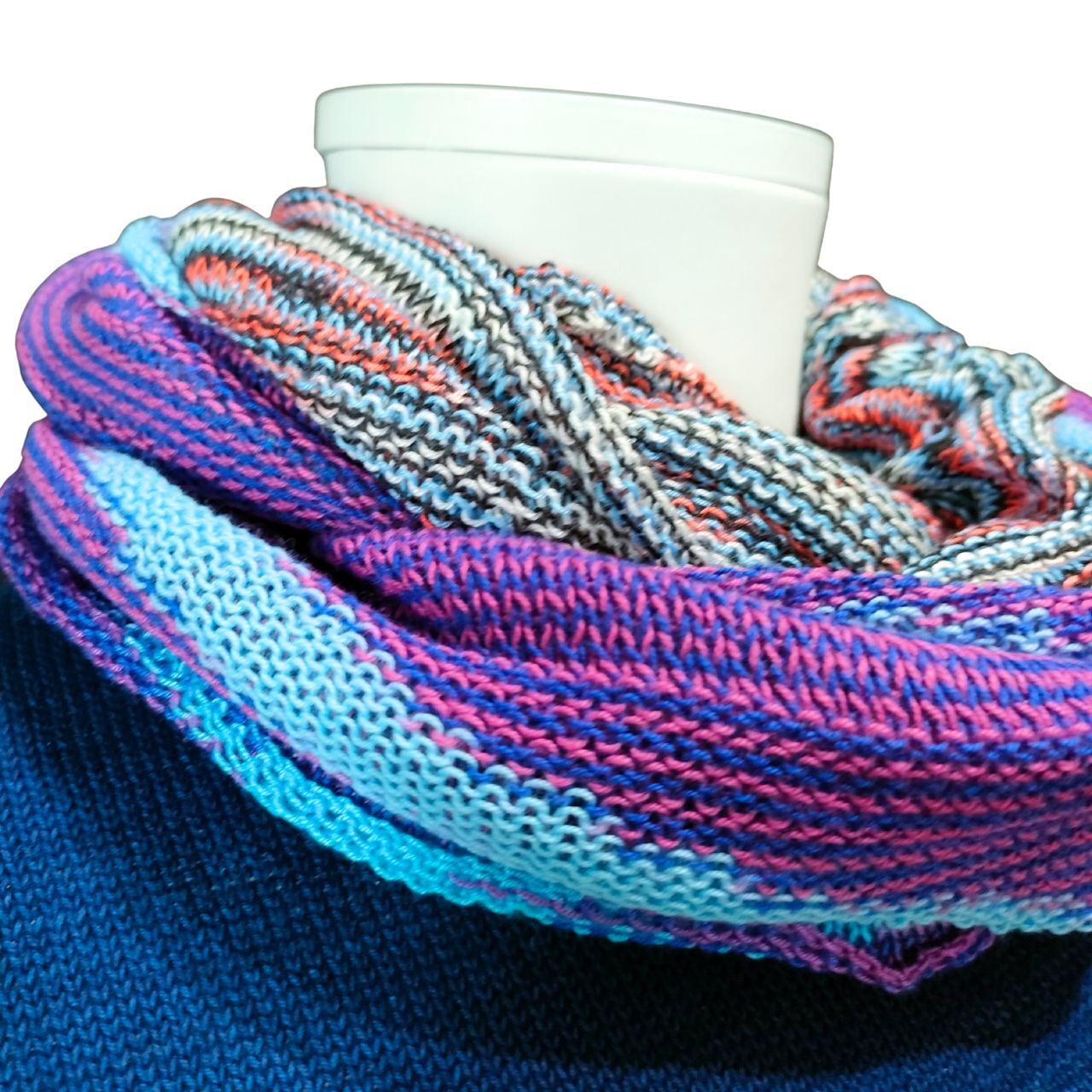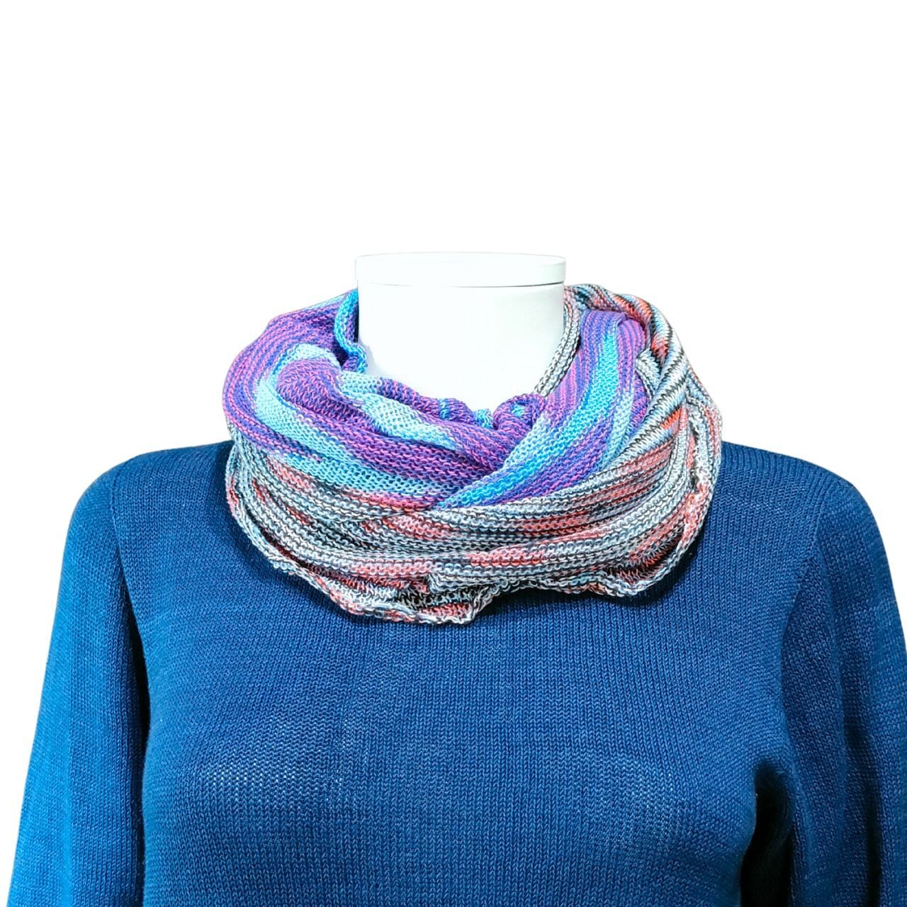 カラーの糸で編んだスヌードです。
