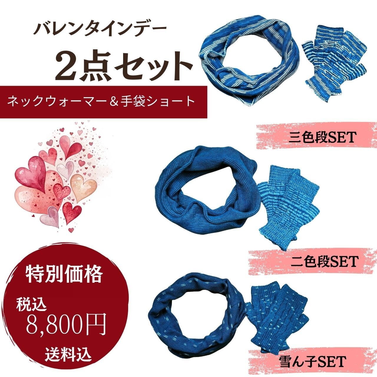 【バレンタインデー2点セット】藍染ネックウォーマー・手袋ショートセット・ホールガーメント