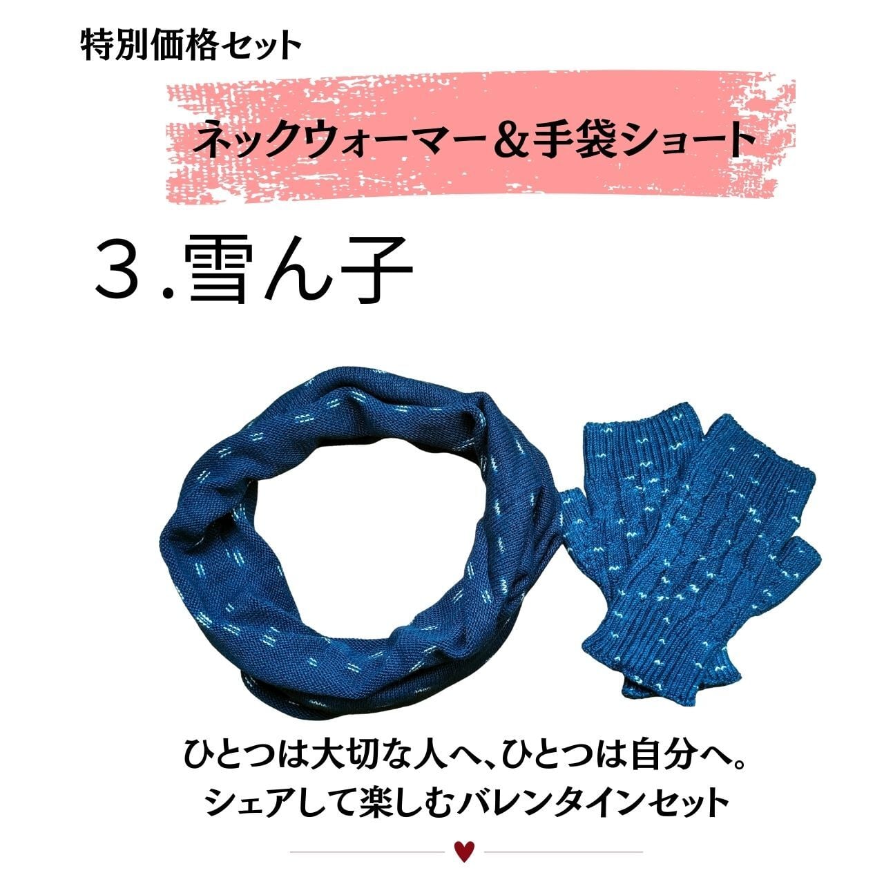 3.雪ん子セット/藍染ニットネックウォーマー・手袋ショート/綿100%