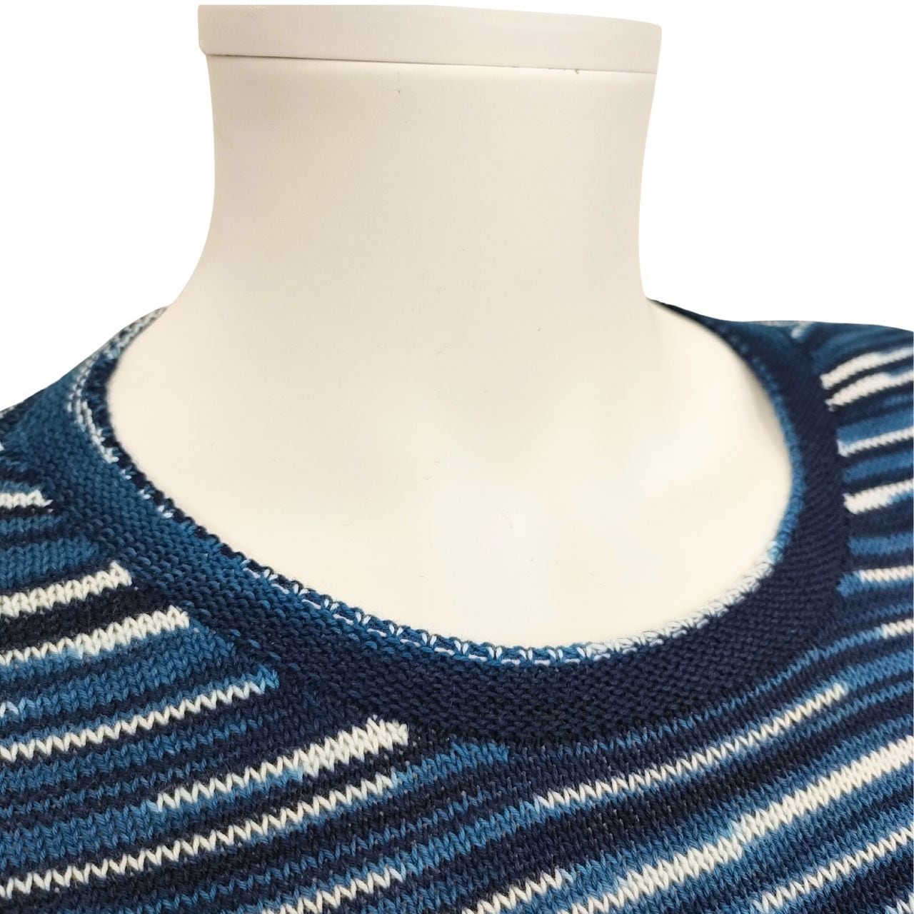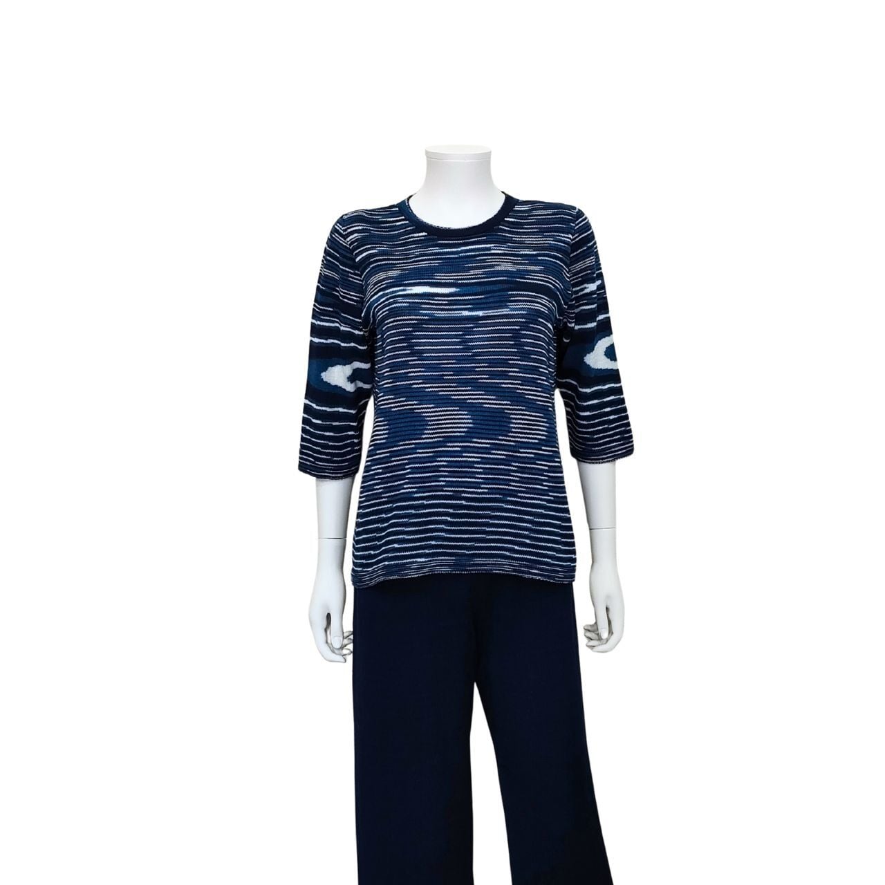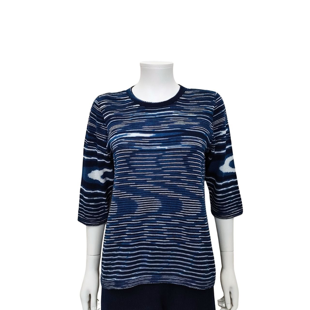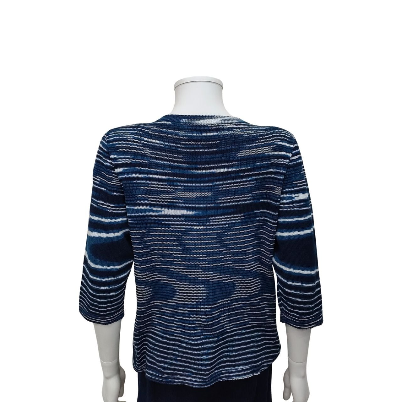 【新】七分袖セーター(丸衿)三色段染/藍染ニット/ホールガーメント