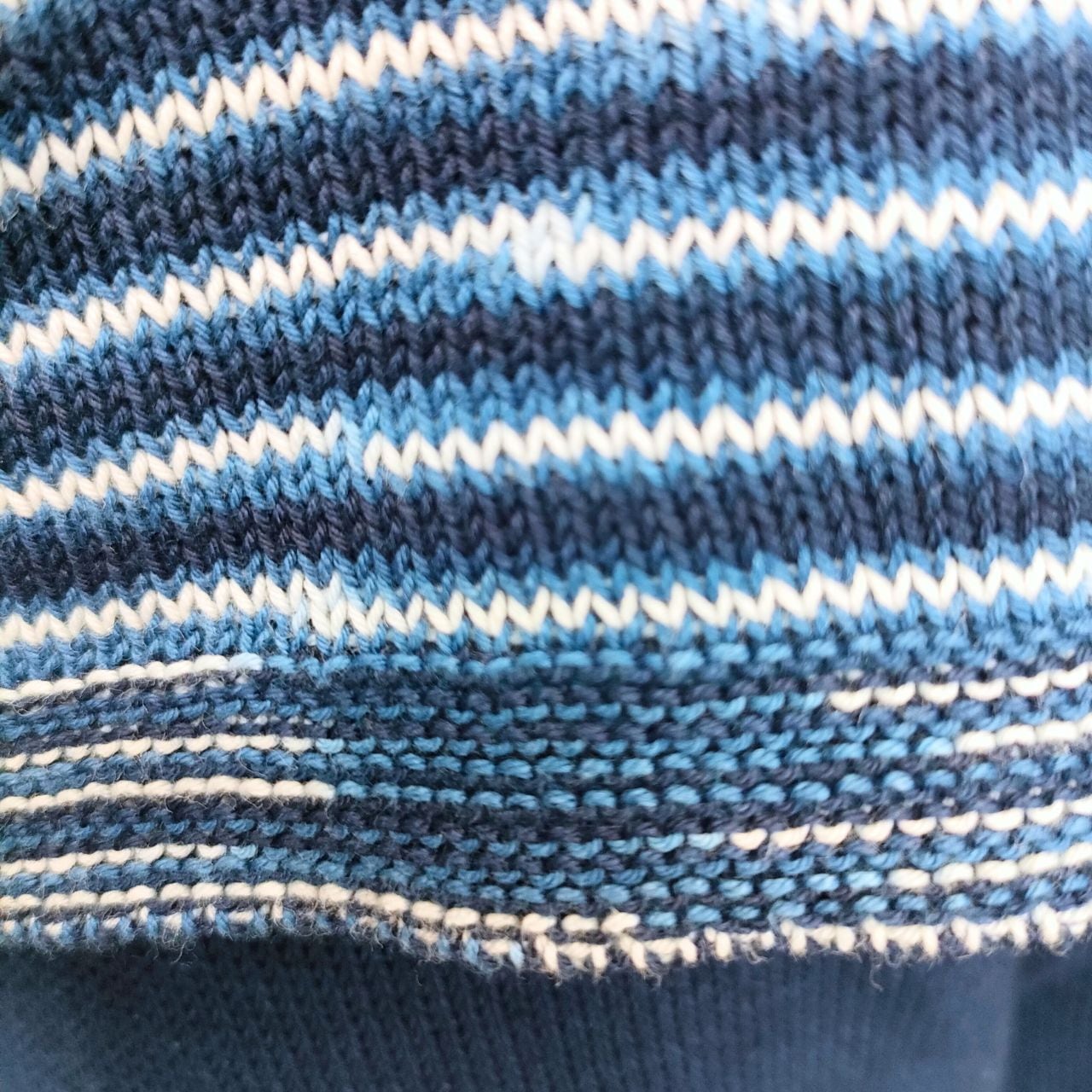 丁寧に編み上げた三色段染。
