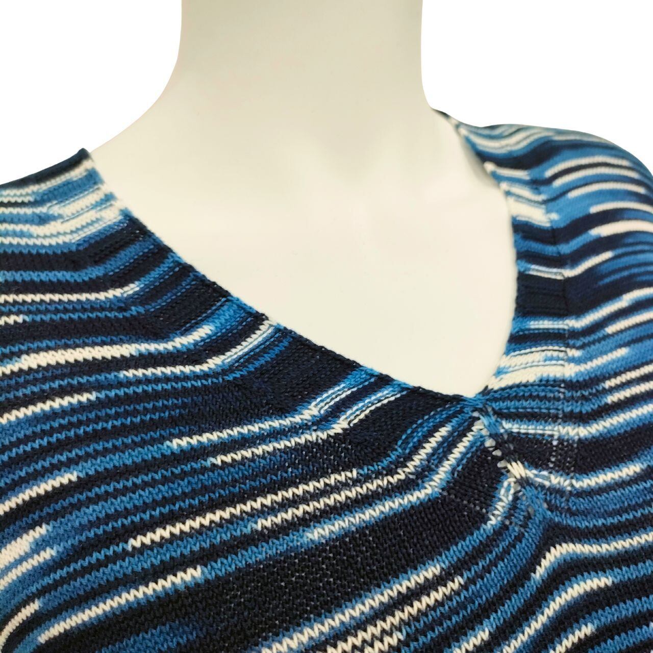 Vネックセーター・七分袖・三色段染/藍染ニット/ホールガーメント