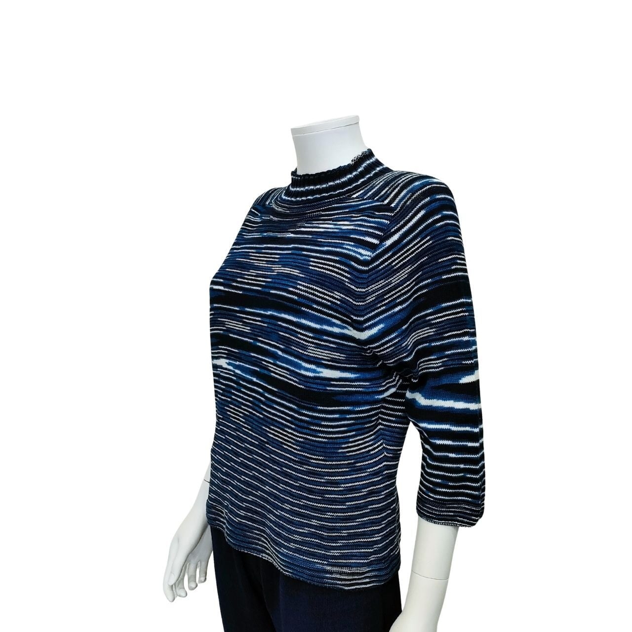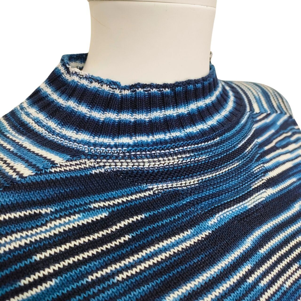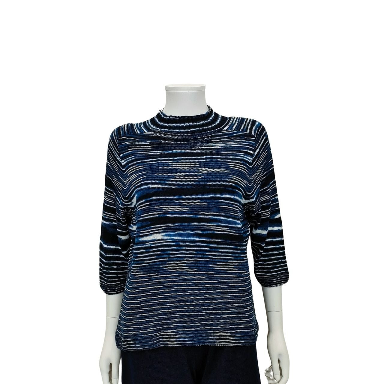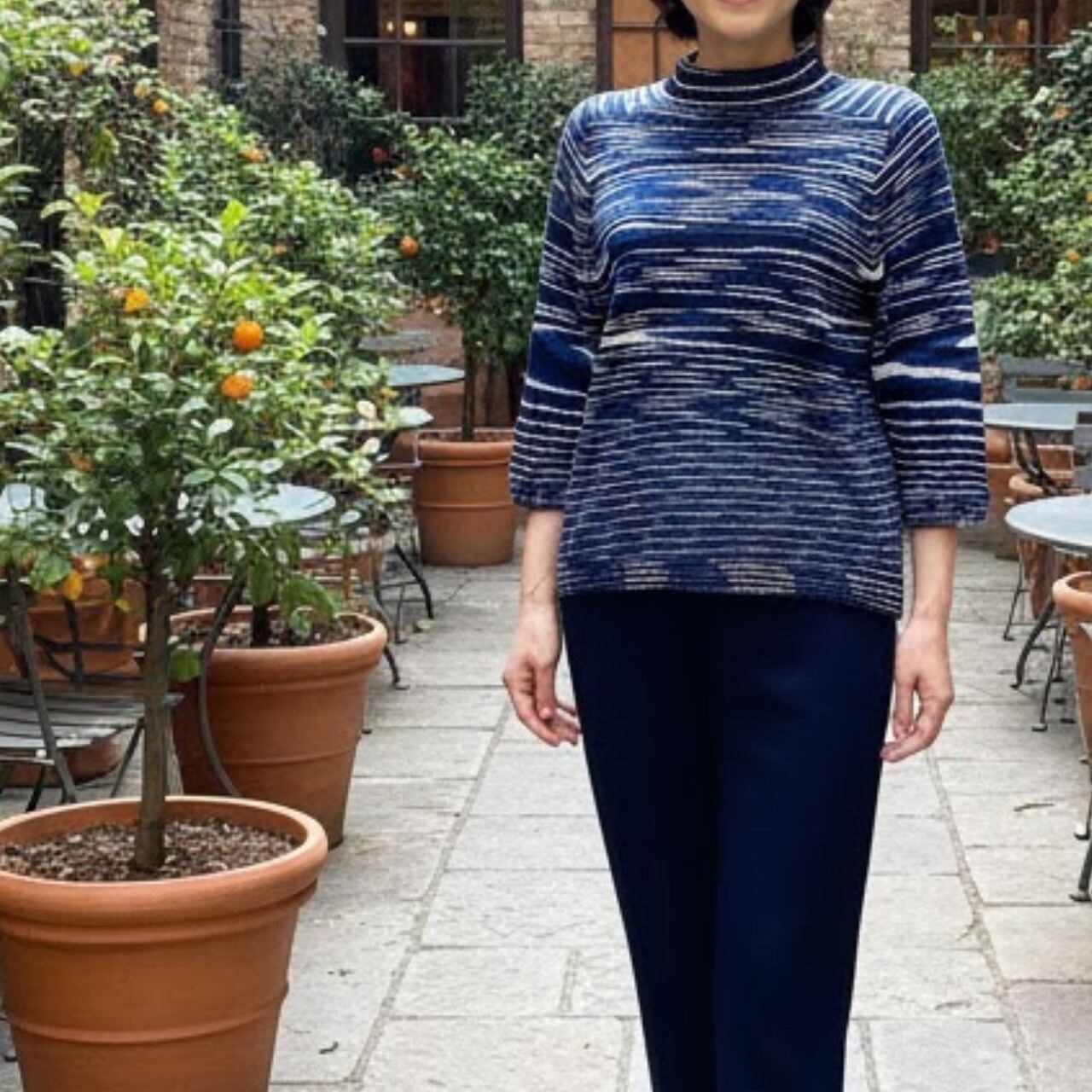 ハイネックドルマン風セーター・七分袖・三色段染/藍染ニット/ホールガーメント