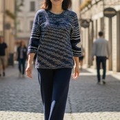 美しいレースのデザインが際立つホールガーメント総レースセーターです。これ一枚で、優雅で女性らしい雰囲気を演出します。丸衿のデザインが顔周りを華やかにしてくれます。