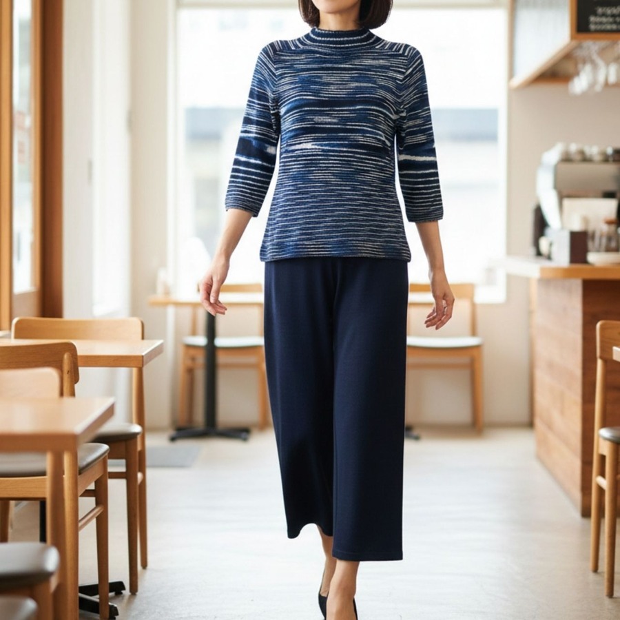 ストレートパンツ・紺無地(選べる股下)/藍染ニット/ホールガーメント