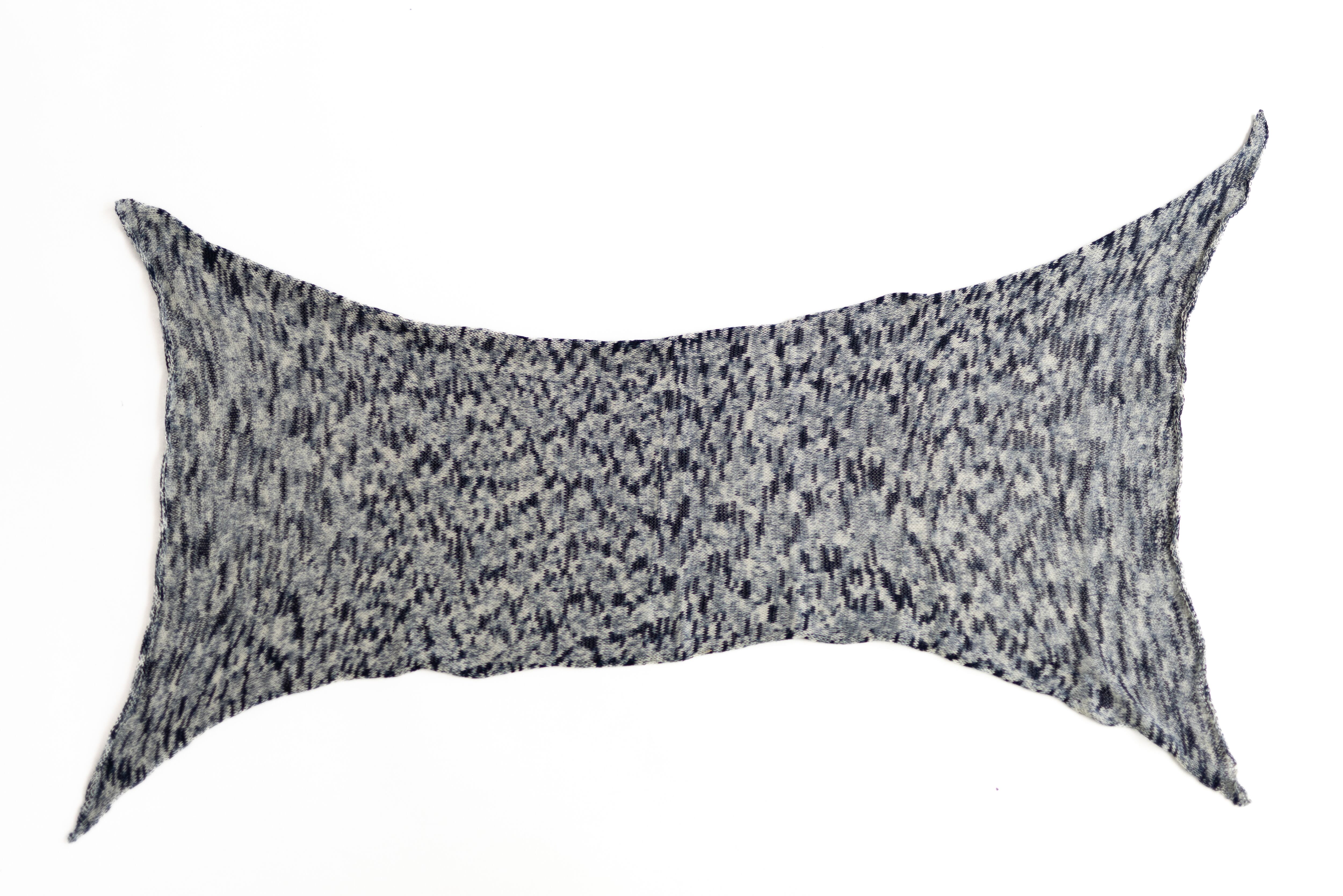 (先染めの手染め糸を編みますので、若干の柄の出方が変わってきます。)