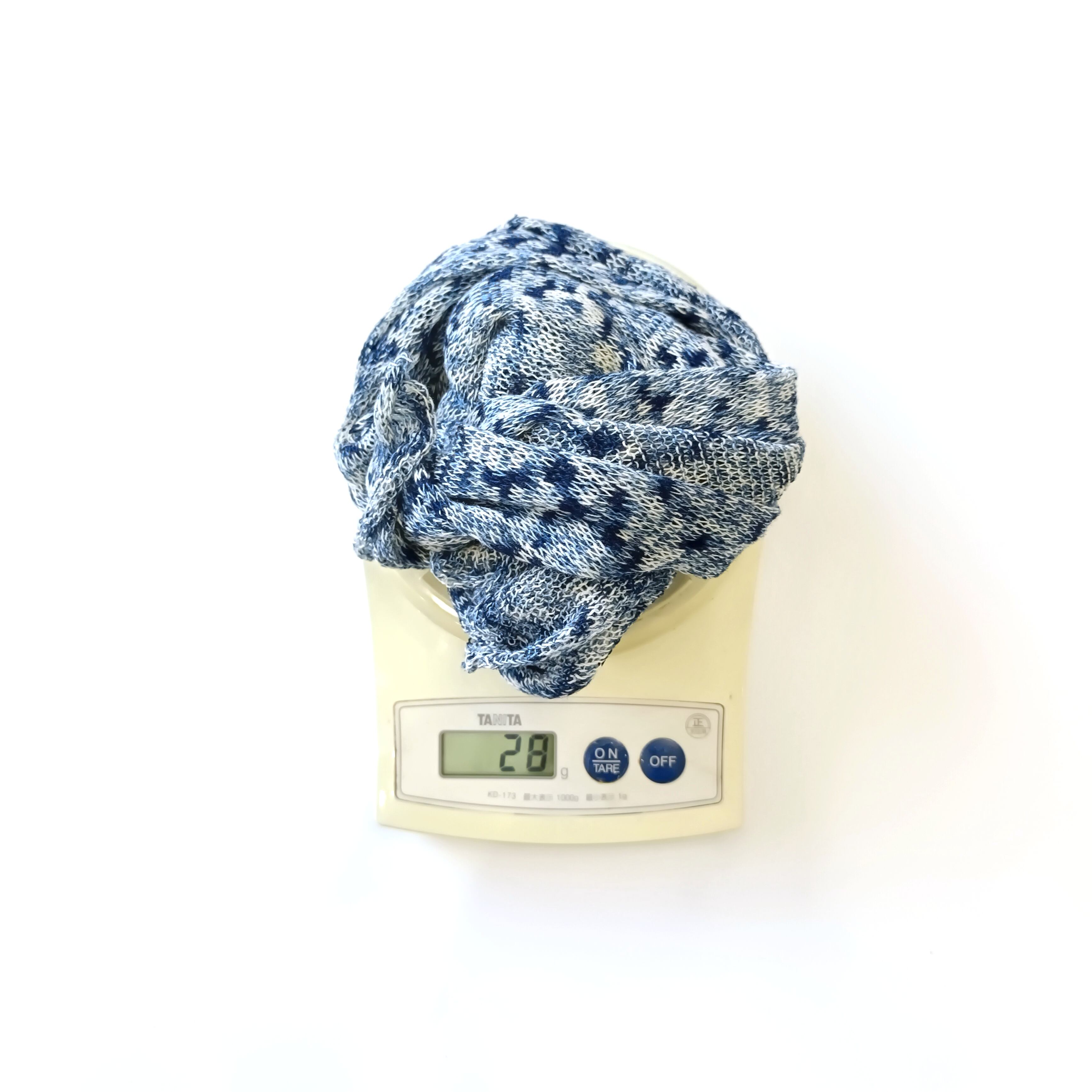 久留米絣のくくり糸(藍染)を使った、希少で複雑な柄が楽しめるストールです。
