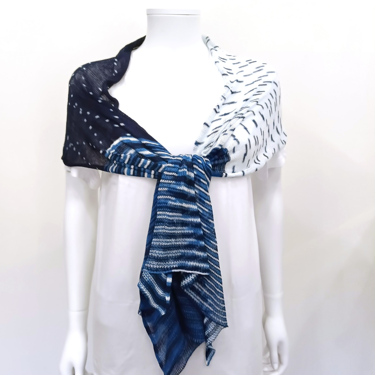 藍染ニットストール(大)・二色段染・雪ん子・白紺・三色段染