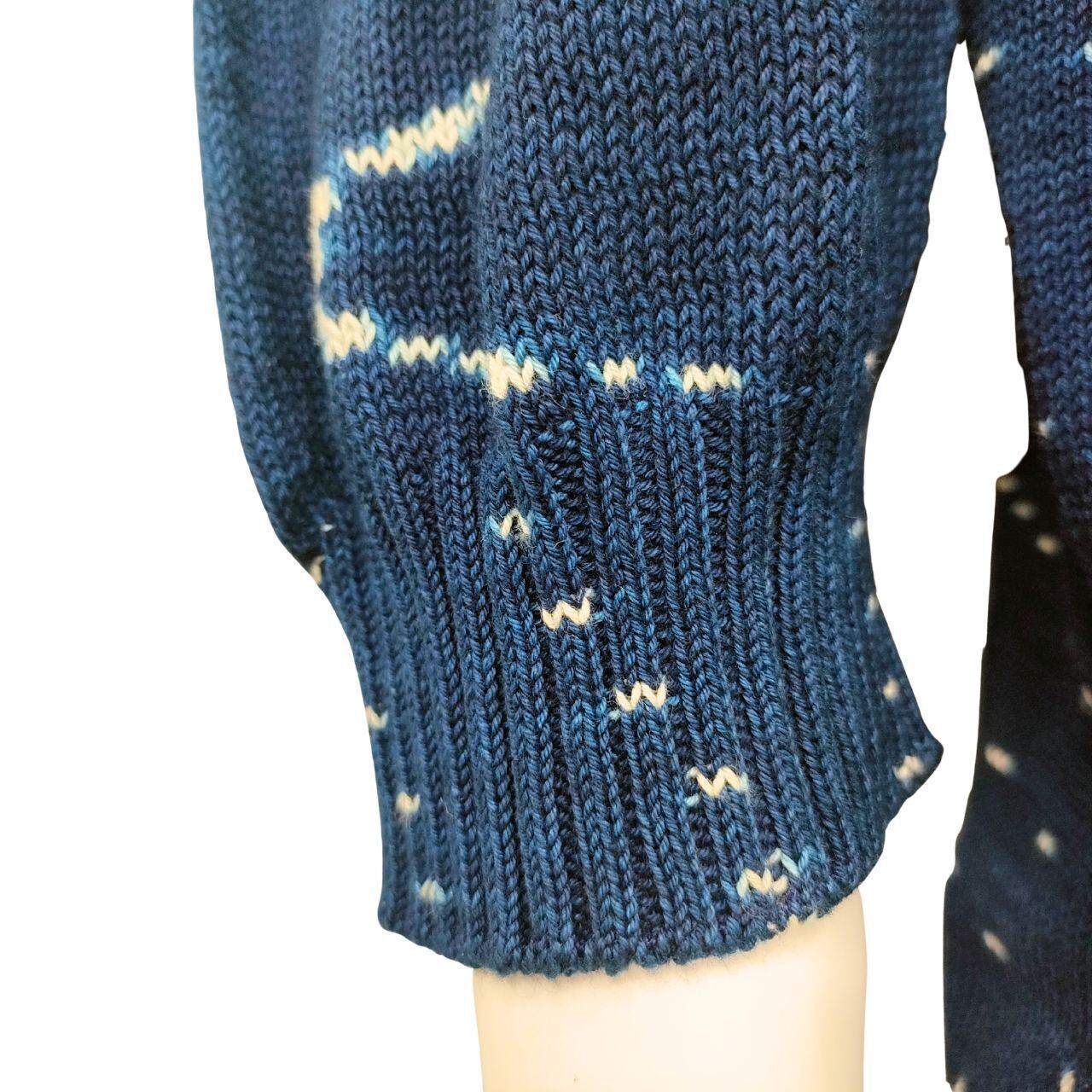 (先染めの手染め糸を編みますので、若干の柄の出方が変わってきます。)