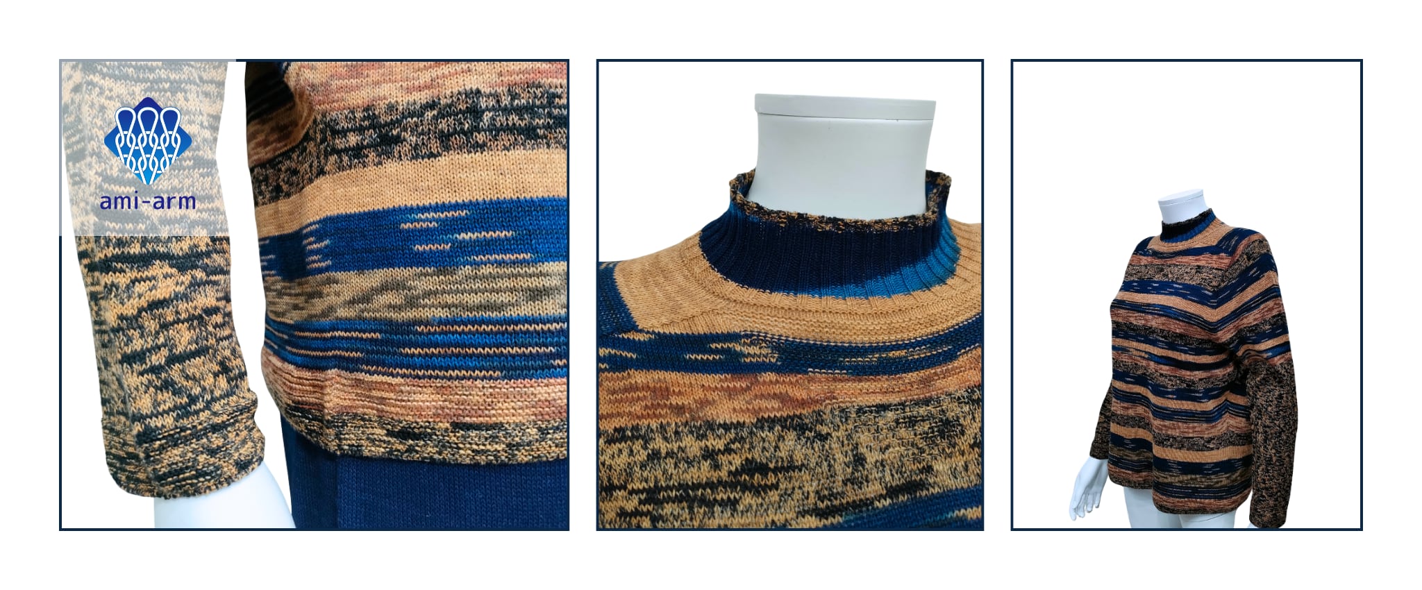 先染めニットでしか出すことのできない独特の染色柄がニットの中に浮かび上がります。